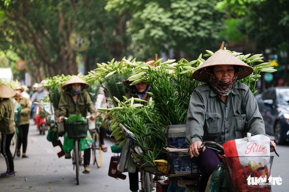 Datanglah di Kota Ha Noi pada kesempatan ini, para wisatawan akan mudah melihat sepeda-sepeda yang penuh dengan bunga bakung paskah di semua jalan. Harganya kira-kira 30.000-60.000 VND per buket bunga bakung paskah. Tidak cemerlang, tidak menonjol, tapi bunga bakung paskah masih menarik para pecinta bunga. Untuk melestarikan keindahan jenis bunga ini, banyak pemuda kadang-kadang datang di kebun-kebun atau jalan-jalan yang penuh dengan bunga tersebut untuk check-in dan berfoto.