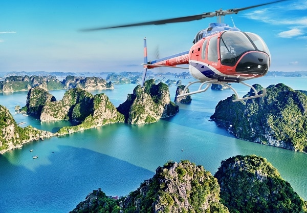 Perusahaan Persero Penerbangan Hai Au, setiap hari memberikan 3-5 penerbangan wisata untuk melayani kebutuhan wisatawan dan berangkat dari pulau Tuan Chau, setiap penerbangan berdurasi 25 menit dengan biaya 1.500.000-2.500.000 song VN/orang. Hal khusus dalam pengalaman ini adalah setiap pilot merangkap sebagai pemandu wisata. Di setiap destinasi, peserta akan mendengar penjelasan tentang tempat-tempat yang dilintasi pesawat seperti Kota Ha Long, pulau Ti Top, desa ikan Vung Vieng, Pulau Mat Rong, Kecamatan Hon Gai, Gunung Bai Tho, Pulau Lu Huong, Pulau Trong Mai, dan sebagainya. Penumpang diperbolehkan menggunakan perangkat digital seperti kamera, ponsel, atau kamera film untuk mengabadikan momen-momen unik di setiap perjalanan. Selain dua layanan di atas, Anda bisa melakukan seluruh perjalanan, namun biaya untuk layanan ini cukup tinggi, mungkin hingga puluhan juta dong Vietnam.
