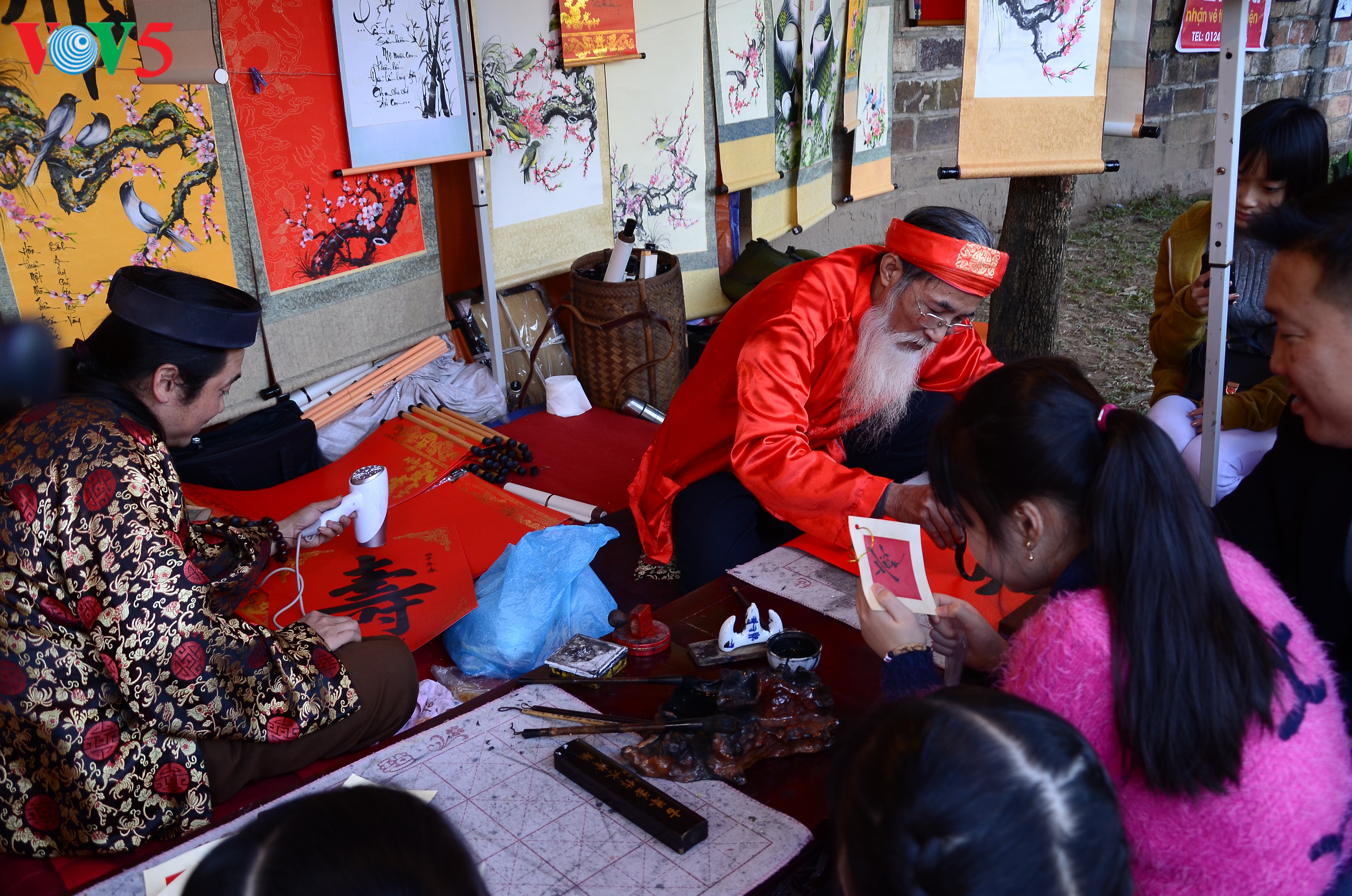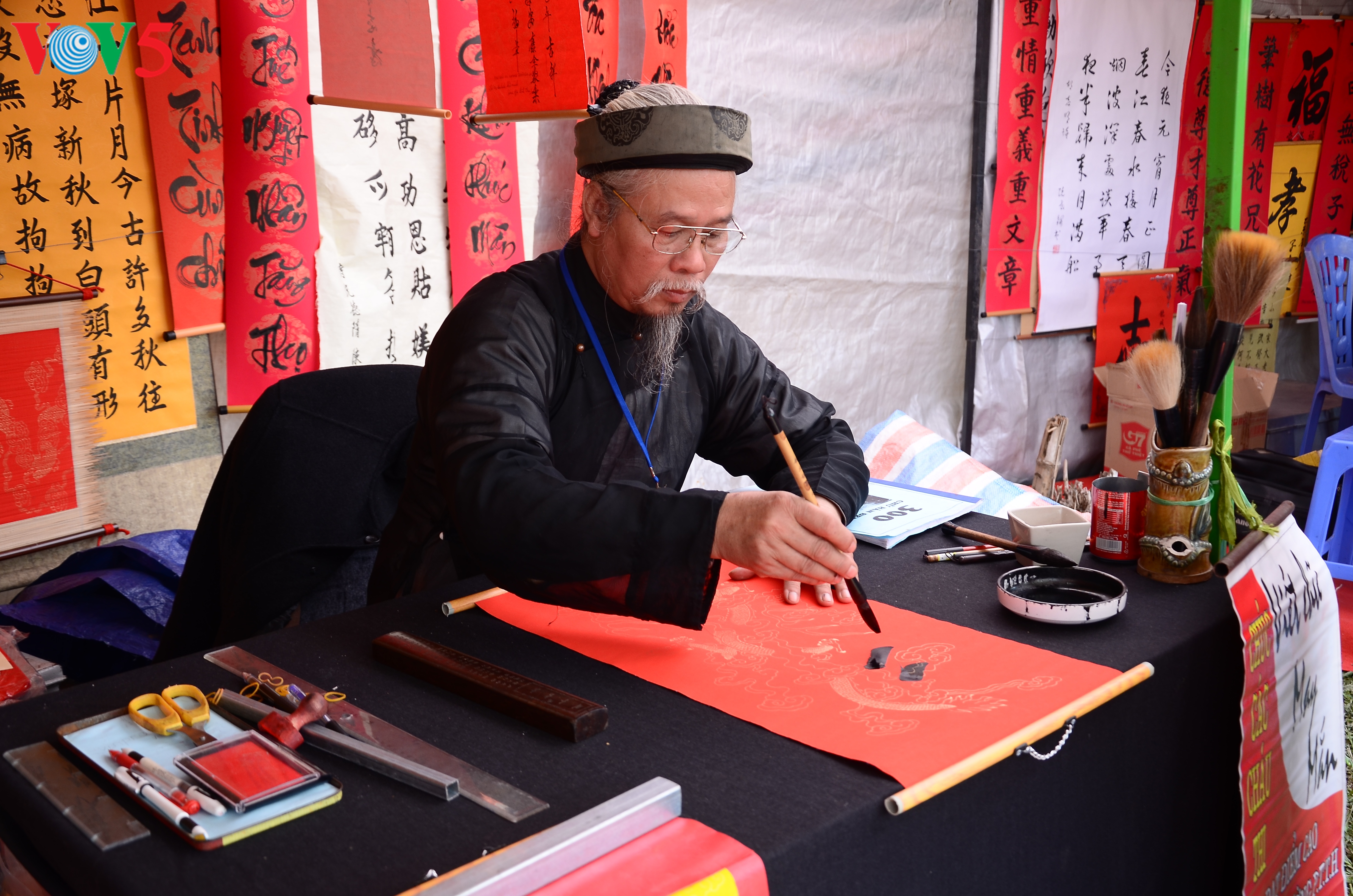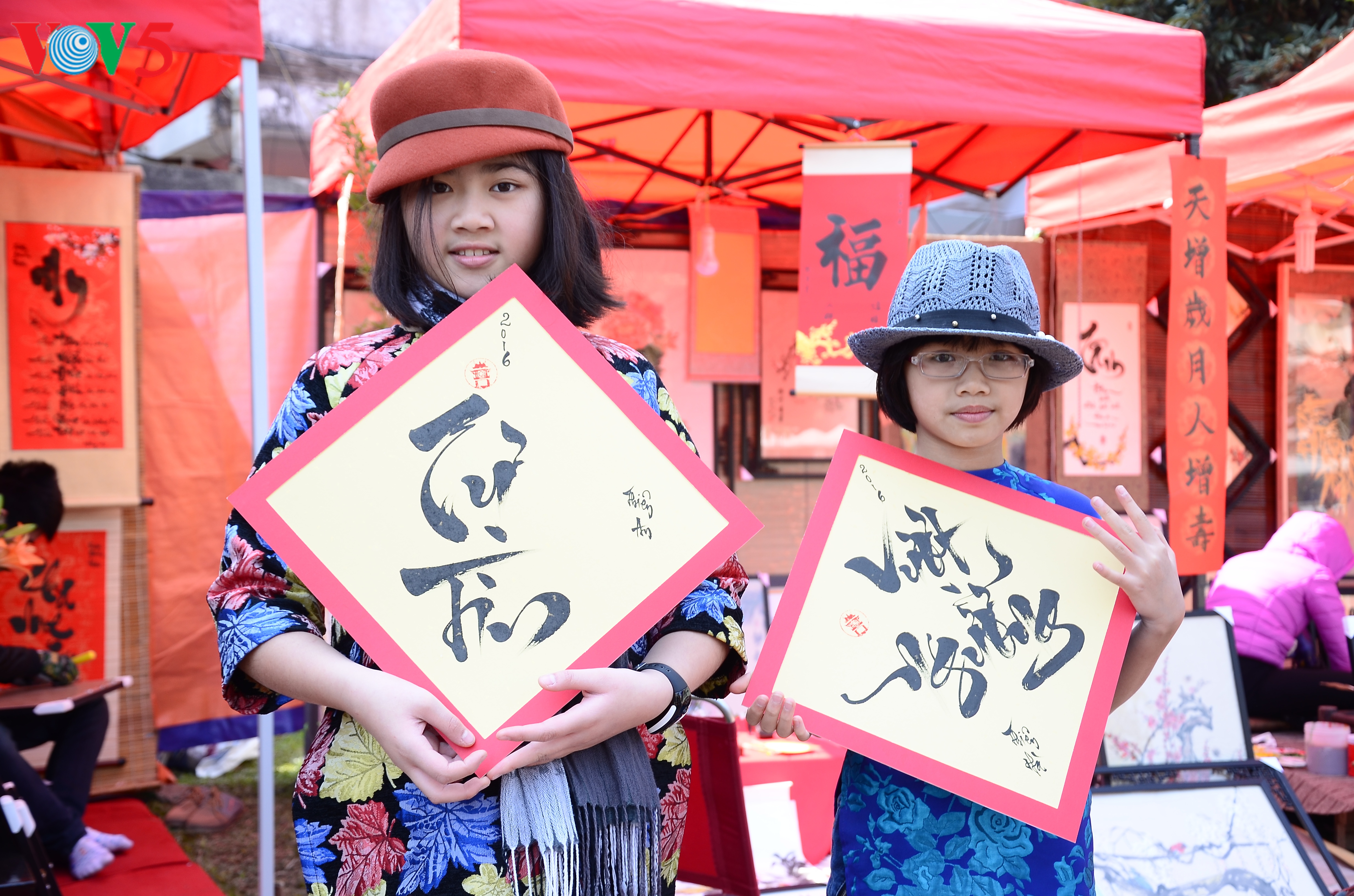 (VOVworld) – Pada Hari Raya Tahun Baru Tradisional (atau Hari Raya Tet) 2016, di kota Hanoi berlangsung banyak aktivitas kebudayaan yang bergelora. Pada awal Tahun Baru Imlek, banyak orang datang Ho Van, di dekat Van Mieu Quoc Tu Giam (Perguruan Tinggi yang pertama di Vietnam) untuk memohon tulisan guna dipasang di rumah pada Hari Raya Tet. Ini adalah ciri budaya tradisional yang indah dari orang Vietnam. Semua tulisan tersebut mengandung bermacam-macam isi, misal-nya: Kebahagiaan, kemujuran, kebaikan hati, talenta, banyak rejeki dan lain-lain....