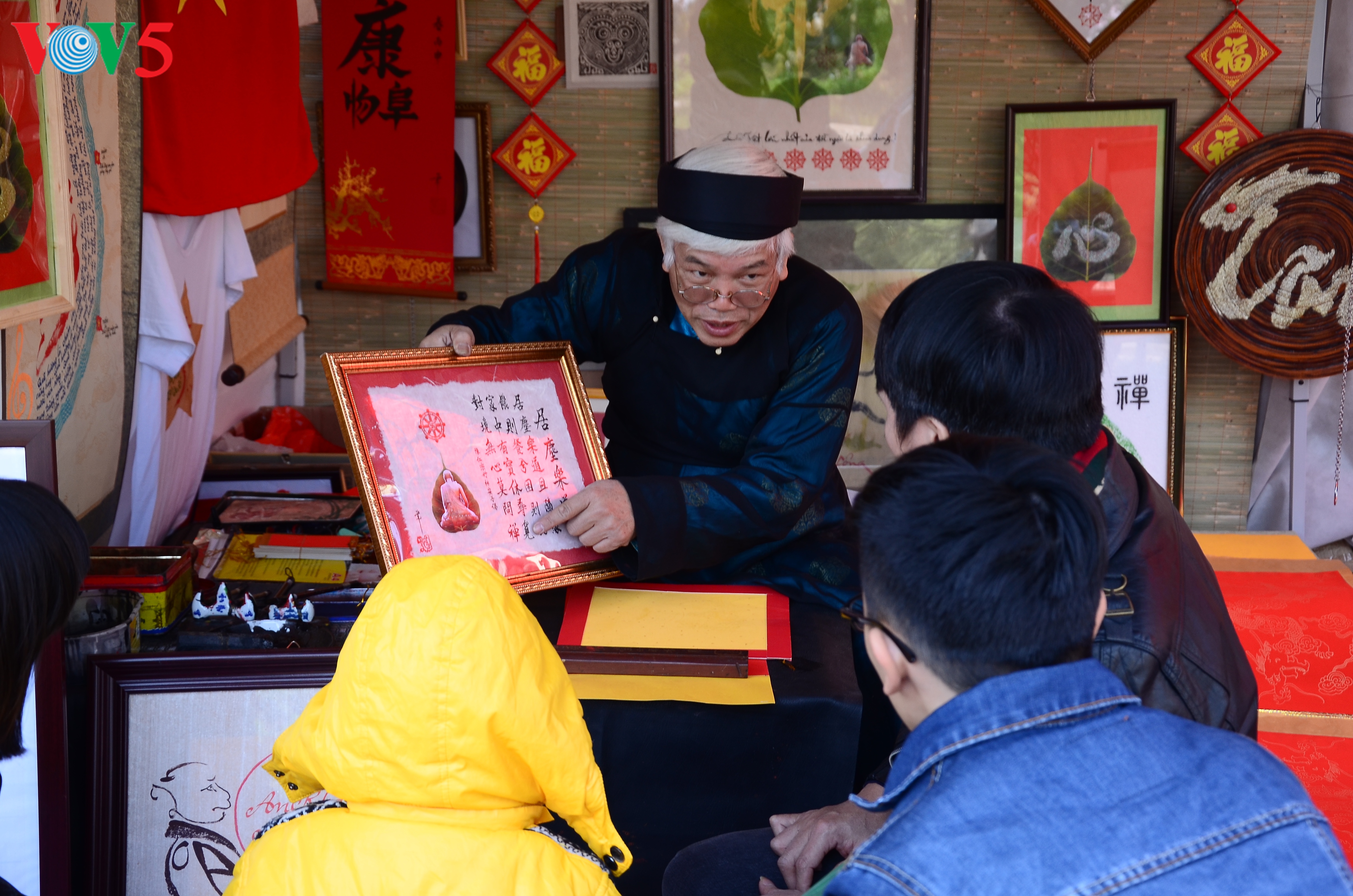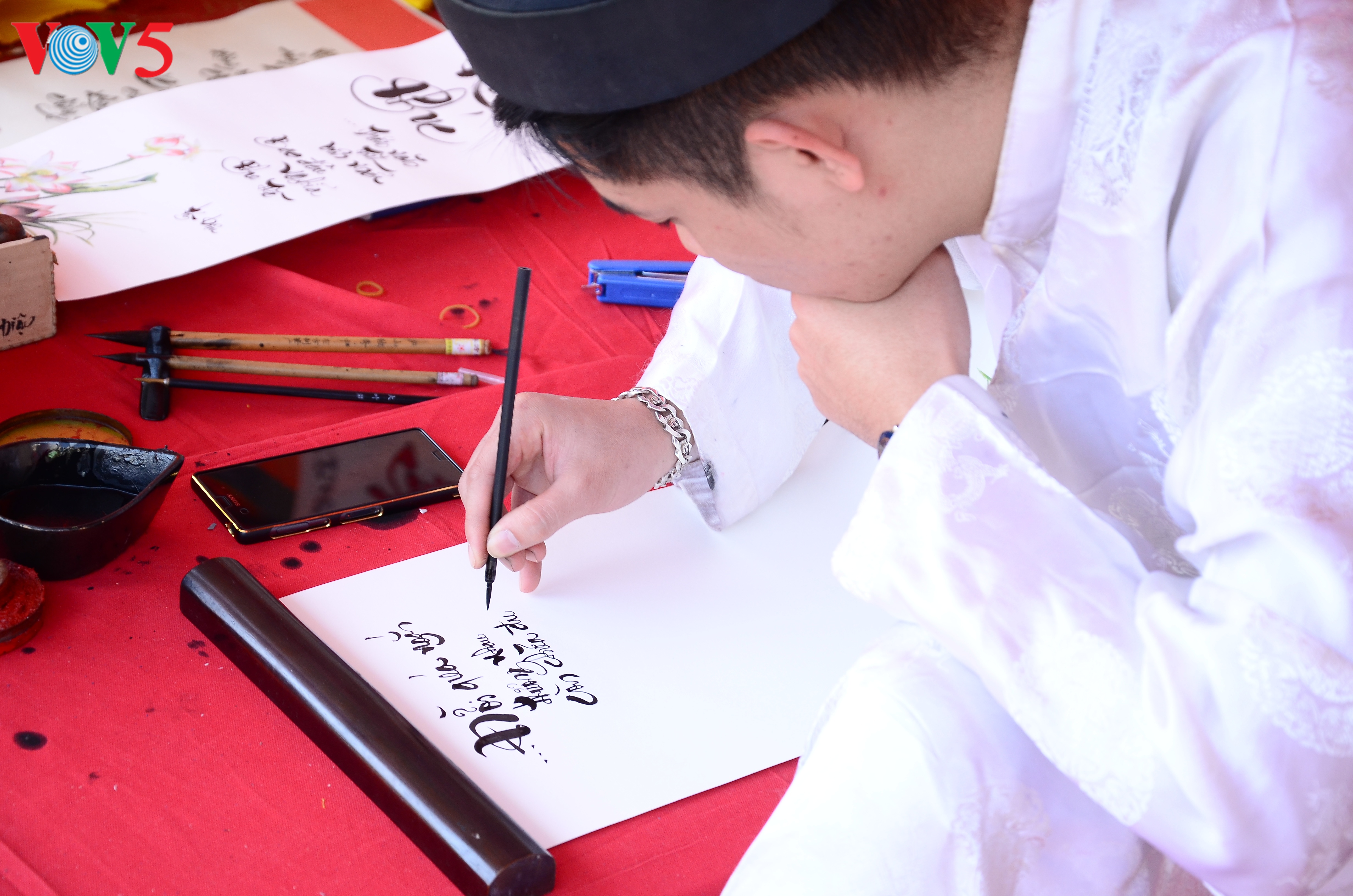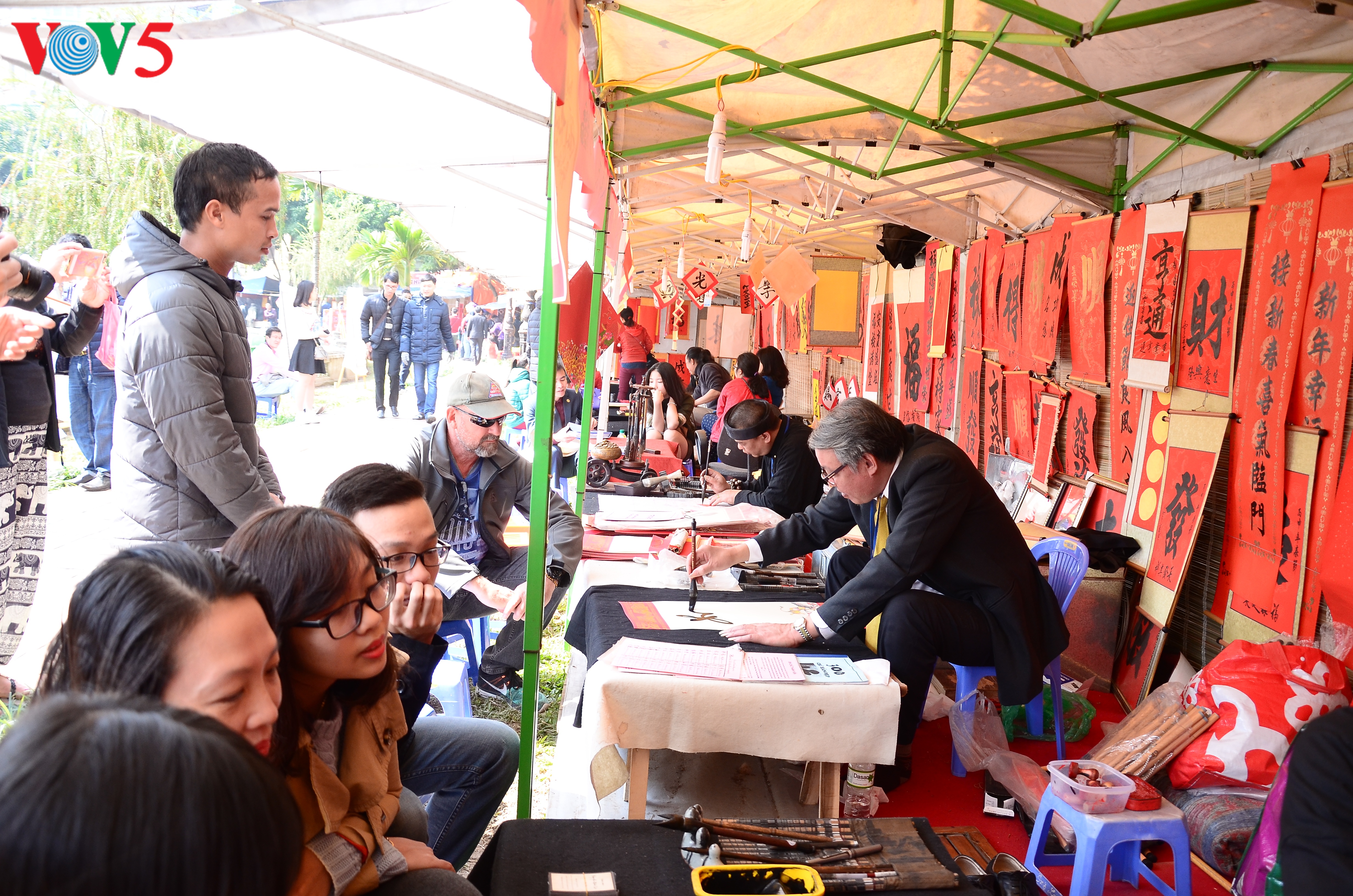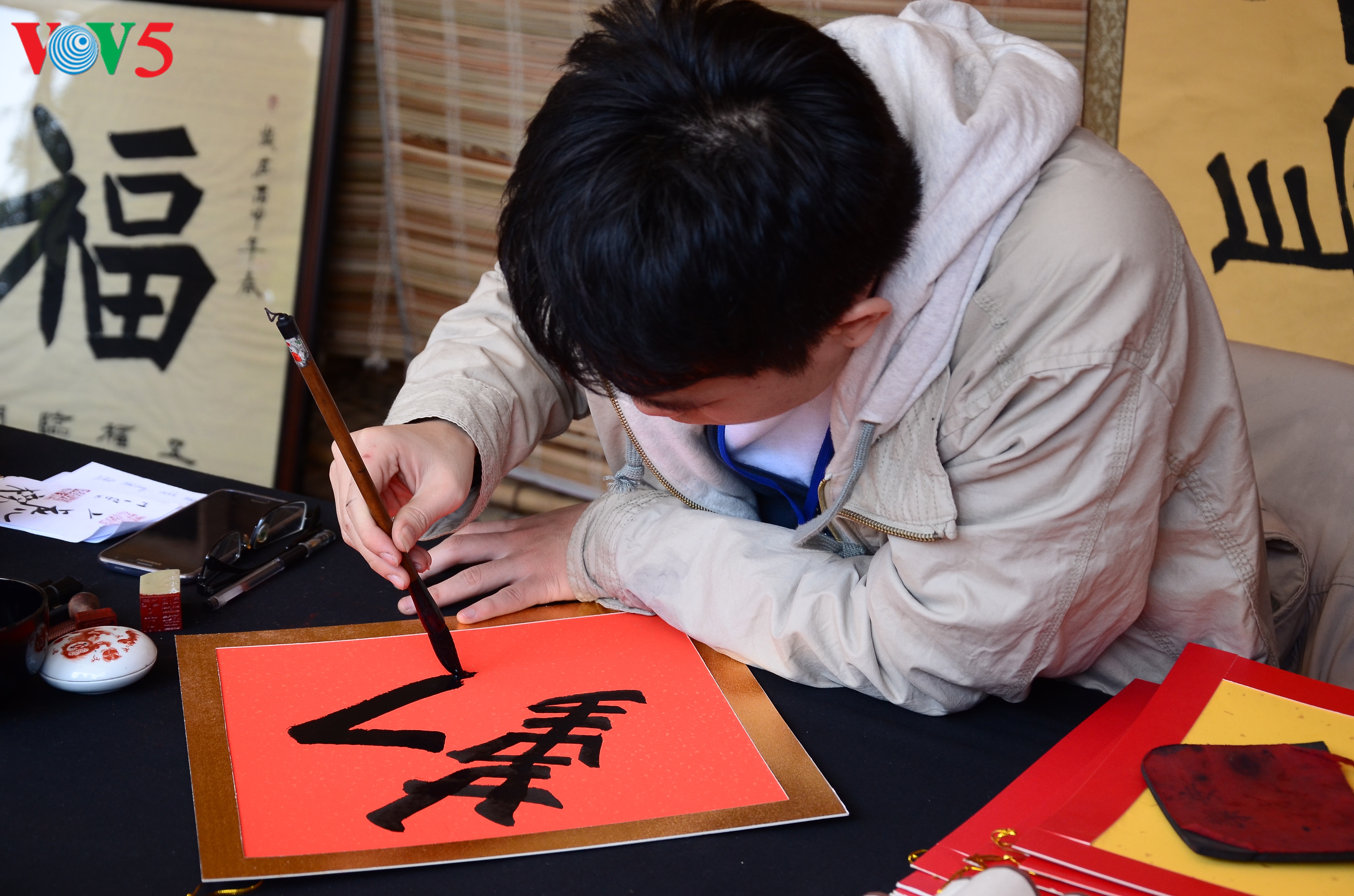(VOVworld) – Pada Hari Raya Tahun Baru Tradisional (atau Hari Raya Tet) 2016, di kota Hanoi berlangsung banyak aktivitas kebudayaan yang bergelora. Pada awal Tahun Baru Imlek, banyak orang datang Ho Van, di dekat Van Mieu Quoc Tu Giam (Perguruan Tinggi yang pertama di Vietnam) untuk memohon tulisan guna dipasang di rumah pada Hari Raya Tet. Ini adalah ciri budaya tradisional yang indah dari orang Vietnam. Semua tulisan tersebut mengandung bermacam-macam isi, misal-nya: Kebahagiaan, kemujuran, kebaikan hati, talenta, banyak rejeki dan lain-lain....