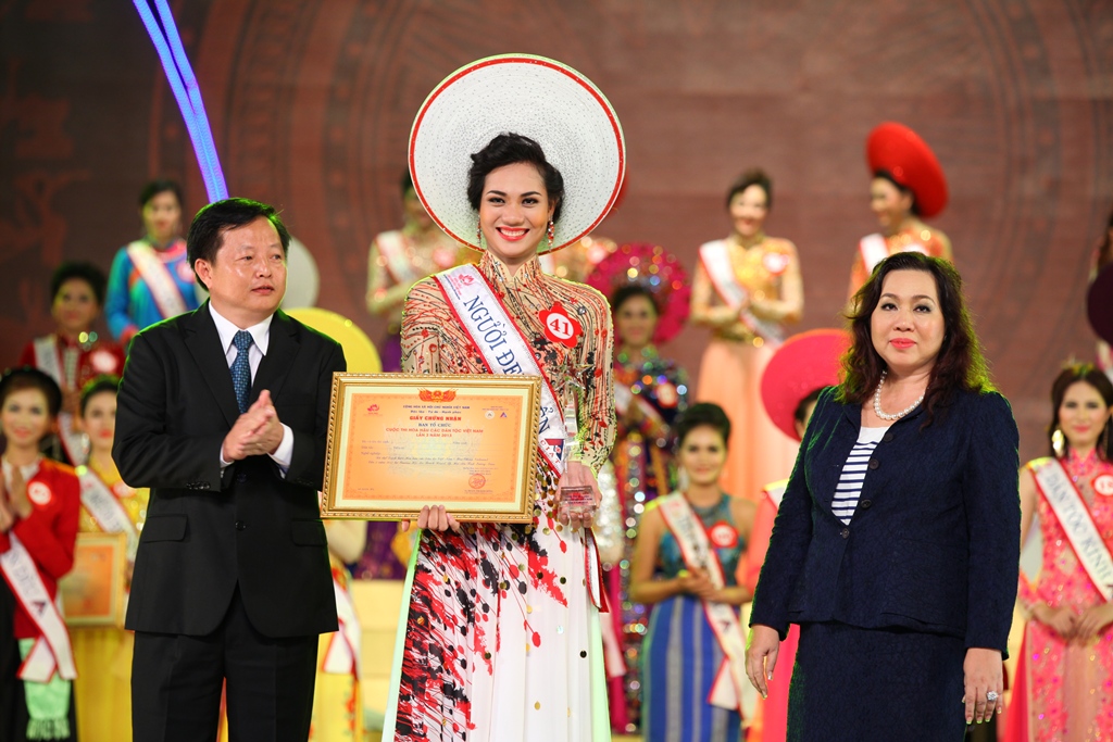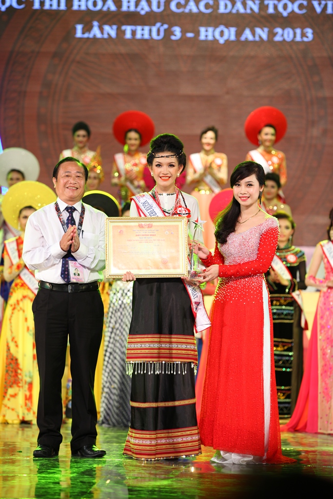 | Dinh Thi Thuy Trang, etnis H're dari propinsi Quang Ngai meraih gelar "Kecantikan yang menunjukkan pakaian tradisional yang paling indah" |