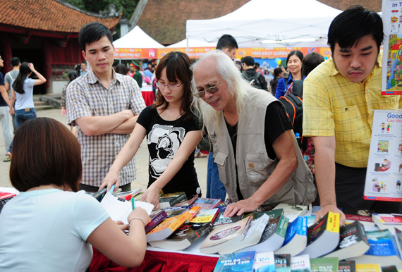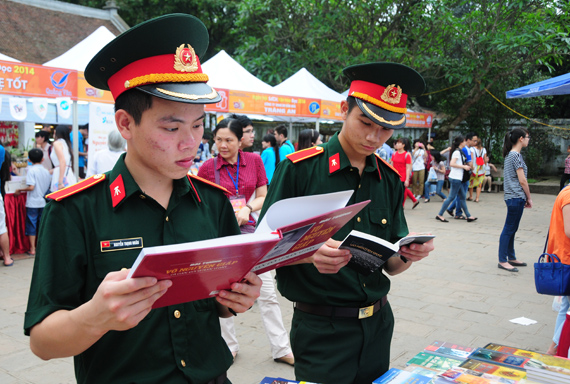 (VOVworld) - Untuk menyambut Hari Buku Vietnam (21 April), di Kuil Sastra Van Mieu - Quoc Tu Giam (Sekolah Tinggi yang pertama di Vietnam) diadakan Pesta Buku - Kebudayaan dengan tema "Buku - Kunci keberhasilan". Ini juga merupakan salah satu usaha untuk mendorong kegandrungan membaca dari kalangan massa rakyat, turut meningkatkan pengetahuan penduduk.