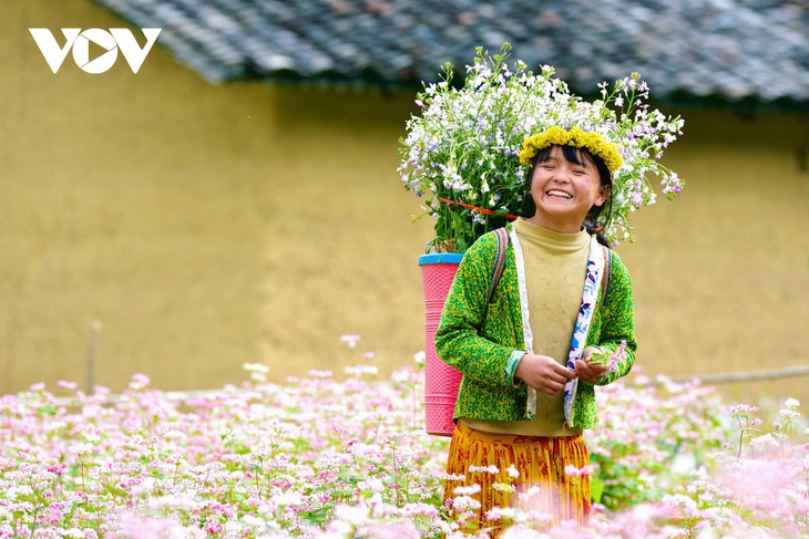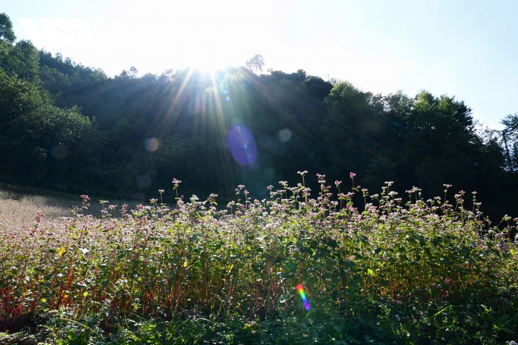 Di tengah ruang pegunungan yang luas, ladang-ladang bunga berwarna merah muda dan ungu membentang tak ada habisnya di seluruh lembah dan lereng bukit, berbaur dalam sinar matahari dalam cuaca dingin ..., yang menunjukkan bahwa Ha Giang sudah masuk dalam musim wisata, musim terindah di tahun.