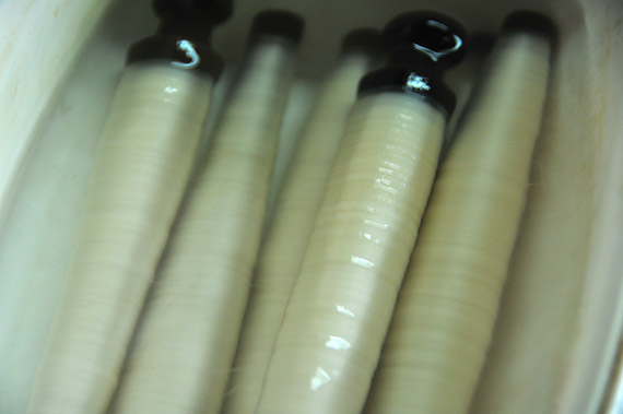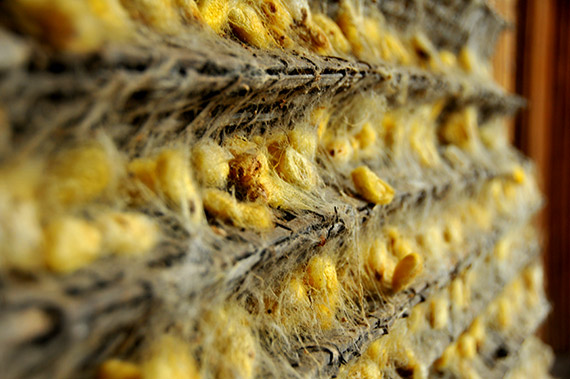 Serat sutra dijadikan gulungan supaya mudah dalam proses menenun sutra