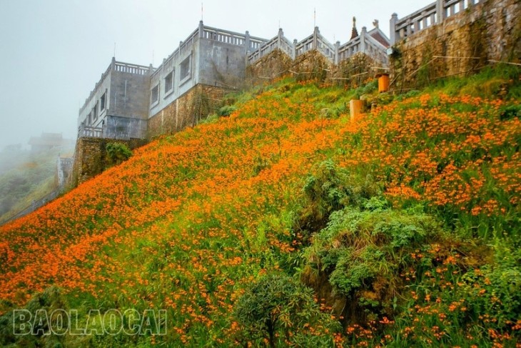Sapa, pada hari-hari awal musim gugur, mengenakan baju berwarna oranye yang cemerlang dari bunga Don Lua (Foto: Sun World Fansipan Legend)
