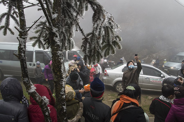 (VOVworld) - Terletak di ketinggian 2.000 meter dari permukaan air laut, gunung O Qui Ho di kota-madya Sapa, Vietnam Utara adalah tempat pertama di daerah pegunungan yang turun salju. Suhu di daerah ini turun di bawah minus 1 derajat sehingga dedaunan, pohon-pohon dan tempat ini tampak membeku. Tapi ini justru merupakan hal yang menyerap kedatangan banyak wisatawan pada daerah ini setiap musim dingin.