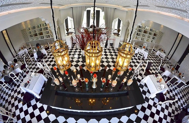 Ruang di dalam dihiasi dengan dua warna pokok ialah hitam dan putih, menciptakan karakteristik sendiri, tapi tidak kalah mewahnya