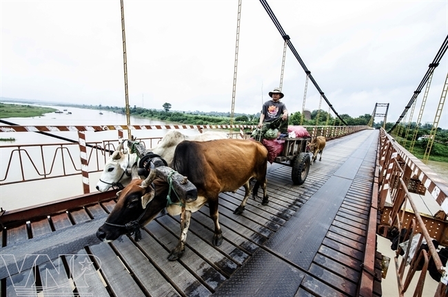 Jembatan gantung melewati sungai Dakbla yang sangat kondusif untuk kaum petani