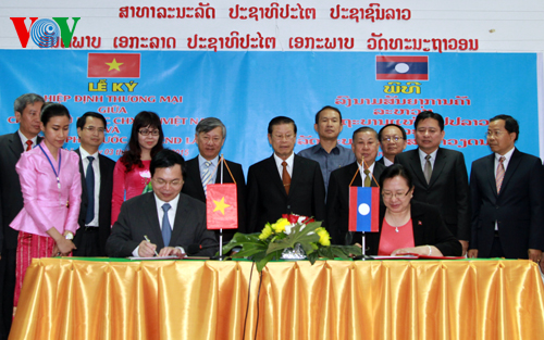 Menandatangani perjanjian perdagangan bilateral baru antara Vietnam dan Laos pada 3 Maret 2015 di kantor Kementerian Industri dan Perdagangan Laos.