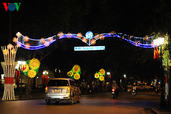 (VOVworld) - Pada hari-hari belakangan ini di kota Hanoi sedang berlangsung banyak aktivitas seperti rapat umum, lokakarya, sarasehan... untuk memperingati ultah ke-60 Pembebasan Ibukota Hanoi (10 Oktober 1954-10 Oktober 2014). Disamping itu, kota Hanoi juga dihiasi dengan dekorasi pano, slogan dan lampu lapion yang berkelap-kelip di setiap jalan dan gang pada waktu ini.