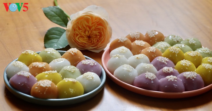 Kue Troi tradisional dibuat dari tepung beras ketan putih berbentuk bulat, isinya mengandung kacang hijau dan gula, ditambah sedikit biji wijen dan kelapa parutan.