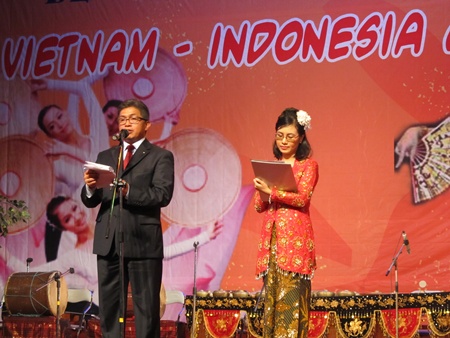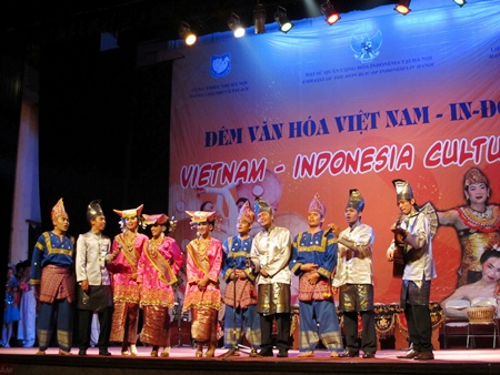 (VOVworld) - Pada Sabtu malam (6 Desember), di kota Hanoi, Gabungan Asosiasi Persahabatan kota Hanoi berkoordinasi dengan Kedutaan Besar Republik Indonesia di Vietnam dan Wisma Budaya Anak- Anak kota Hanoi mengadakan Malam Kebudayaan Vietnam- Indonesia. Yang menghadiri program ini ada Wakil Harian Ketua Gabungan Asosiasi Persahabatan kota Hanoi, Vu Thi Hai, Duta Besar Luar Biasa dan Berkuasa Penuh Indonesia di Vietnam, Mayerfas , para Duta Besar Kamboja, Singapura, Malaysia di kota Hanoi , kantor- kantor media dan dan banyak penonton kota Hanoi.