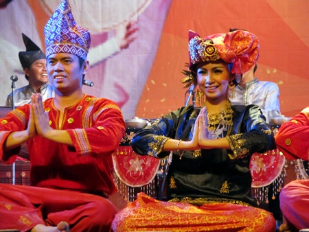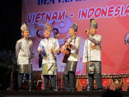 | Memperkenalkan delegasi kesenian Padang dari Sumatera Barat yang datang ke Vietnam untuk menunjukkan tarian dan lagu-lagi tradisional Sumatera barat di sini |