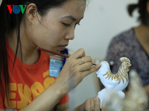 (VOVworld) - Sudah 30 tahun bekerja di bidang keramik dan porselan, bapak Bui Xuan Hai selalu berusaha mencari teknik baru untuk mencat barang keramik dan porselannya. Kini produknya sudah menjadi unik dan terkenal karena semuanya dilapisi dengan emas asli.