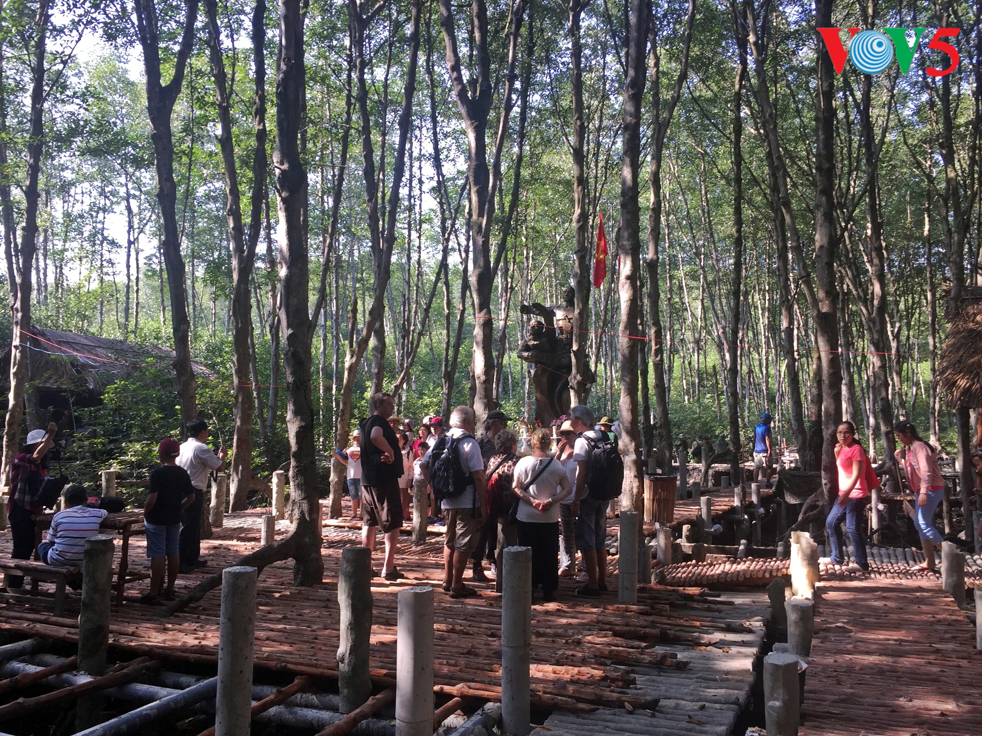 | Sekarang ini, pangkalan militer Hutan Sac telah menjadi situs peninggalan sejarah yang menyerap kedatangan banyak wisdom dan wisman. Para wisatawan membakar hio di Patung Monumen Martir. |