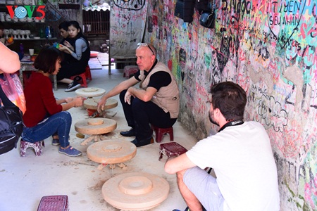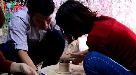 Pemilik tokoh bersedia memberikan bimbingan kepada wisatawan cara membuat barang keramik. Menurut saudari Thu Trang, pemilik toko Tuan Trang, dia sendiri harus belajar membuat barang keramik setahun baru bisa membentuk barang. |