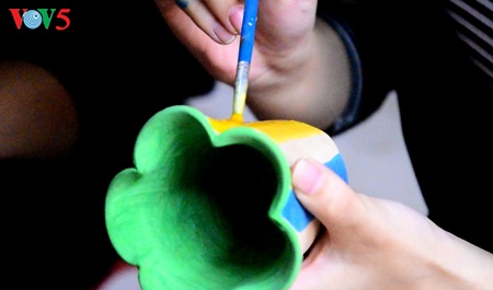 | Wisatawan bisa mengeringkan produk, melukis, mengilapka-nnya dan membawanya ke rumah sebagai barang hiasan ongkos setiap produk sebanyak 30.000-50.000 dong Vietnam. |