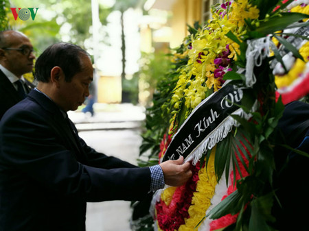 | Delegasi orang-orang kota Hanoi yang datang ke Kedutaan Besar Kuba di Vietnam untuk melayat almarhum |