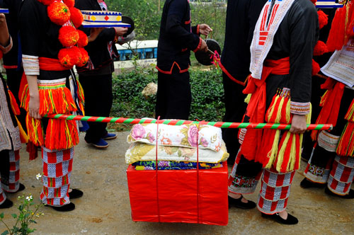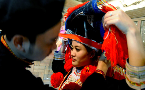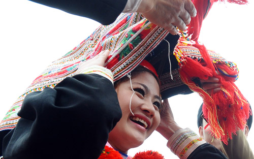 (VOVworld) - Pengantin perempuan etnis minoritas Dao menunggu keluarga pengantin laki- laki untuk menjalankan ritual. Ini merupakan upacara pernikahan rakyat etnis minoritas Dao Merah dalam pesta musim semi di Kampung Budaya etnis- etnis Vietnam di Dong Mo- kota Hanoi.