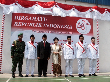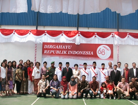 Para peserta upacara peringatan ultah ke-68 Hari Kemerdekaan Republik Indonesia