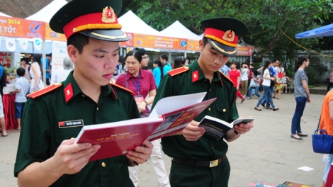 (VOVworld) - Untuk menyambut Hari Buku Vietnam (21 April), di Kuil Sastra Van Mieu - Quoc Tu Giam (Sekolah Tinggi yang pertama di Vietnam) diadakan Pesta Buku - Kebudayaan