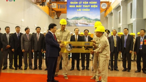 Meresmikan pabrik hydro listrik Lai Chau