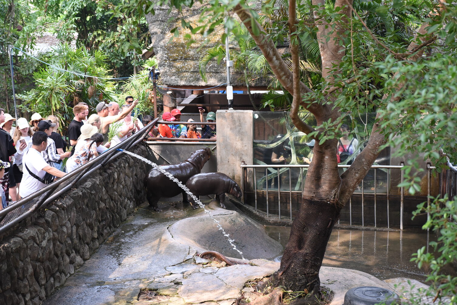 Didirikan pada tahun 1978, Kebun Binatang Terbuka Khao Kheow bukan hanya tempat rekreasi saja, tetapi juga pusat konservasi. Walaupun tingginya jumlah pengunjung dapat mempengaruhi kesehatan hewan, tetapi pihak pengelola kebun binatang tersebut telah menetapkan rute tur yang jelas, membatasi waktu setiap kunjungan ke Moo Deng hanya 5 menit untuk menjamin agar setiap orang berpeluang untuk bertemu tanpa membebani kuda nil betina terkenal ini. Bapak Srisak Sukchum, Asisten Direktur Kebun Binatang Terbuka Khao Kheow, mengatakan: