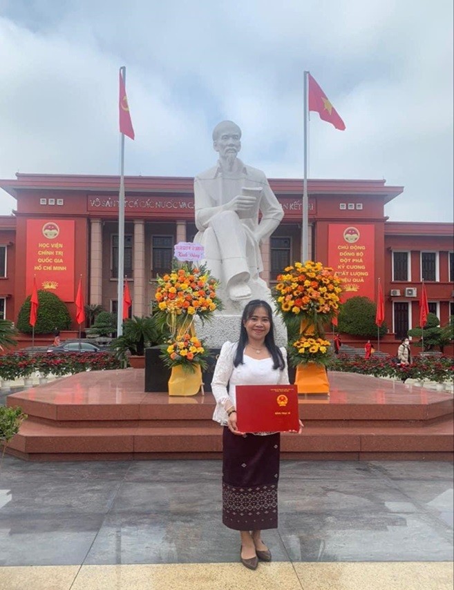 Ibu Thongmy Sihavong - seorang mahasiswa doktoral di Akademi Politik Nasional Ho Chi Minh(Foto diberikan tokoh) |