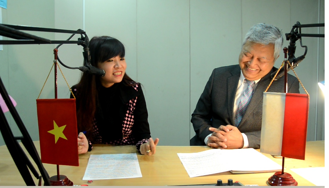 Dubes Ibnu Hadi: Saya fokus pada masalah ekonomi dan perdagangan. Pertumbuhan Vietnam mencapai 6-7%, pertumbuhan ekonomi Indonesia stabil berkisar 5%, sehingga terjadilah peningkatan kebutuhan antara dua negara. Kami telah mengadakan “Indonesia spesiaty coffee week”, pameran fashion di mana 34 perusahaan ikut serta. Yang ingin saya tekanakan yalah perlunya peningatan “People to people contact”, jadi dalam contact itu kami mendorong berbagai kegiatan seperti pengajaran bahasa Indonesia, kami mendorong mahasiswa-mahasiswa Vietnam untuk belajar di Indonesia, mendorong parnertship antar-universitas. Dan untuk itu, Pada 25/12 kami mengadakan satu pementasan musik. Kami arahkan kepada pemuda Vietnam untuk hadir. Jadi sifatnya untuk lebih meningkatkan saling pengertian dan persahabatan antara Vietnam dan Indonesia.