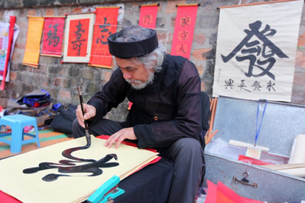 Kaligrafi berasal dari Tiongkok dan diperkenalkan ke Vietnam pada tahun-tahun awal Dinasti Han. Sejarah terbentuknya seni kaligrafi huruf Han di Vietnam mirip dengan kaligrafi di Tiongkok, namun ekspresi estetisnya memiliki poin yang relatif berbeda sesuai jejak pribadi sang seniman dengan jiwa Vietnamnya. Kaligrafi di Vietnam sudah merupakan seni tradisional dan diturunkan dari generasi ke generasi. Nilai bentuk seni ini tidak hanya mengkristal dalam teknik penulisan dan komposisi sastra, tetapi juga terletak pada tingkat pendidikan, martabat manusia, dan pemikiran filosofis. Kaligrafi Vietnam ditampilkan pada banyak bahan, seperti kertas, kain, kayu, bambu, batu, tembaga, mutiara hias, dan keramik. Kaligrafi Vietnam adalah kombinasi harmonis antara menulis dan melukis, membentuk karya seni yang unik. Kaligrafer Nguyen Quang Thang, seorang petugas penelitian di Institut Studi Han Nom, mengatakan: