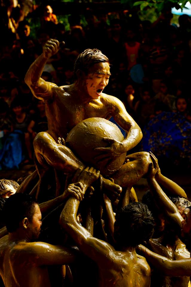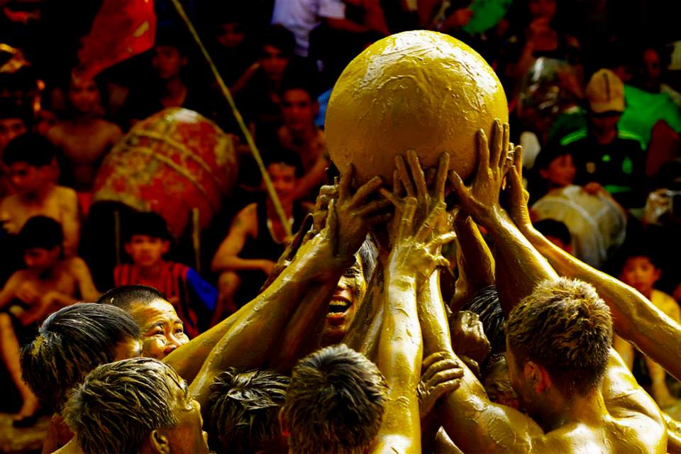 ![]() Selected unmarried men shove each other for a wood ball at an annual festival to honor local gods who defeated lagoon monsters in the 6th century, and to pray for bumper crops. |