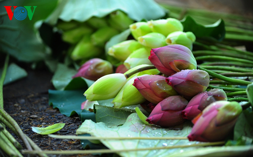 A bunch of 10 lotus flowers is priced at around VND10.000-VND15.000.