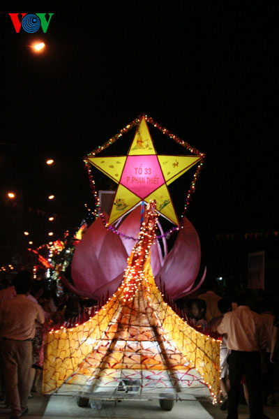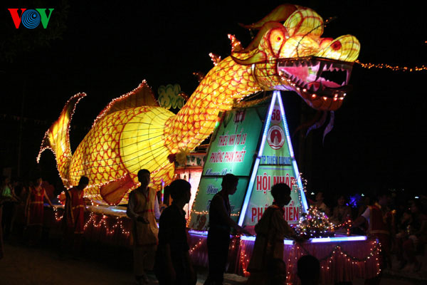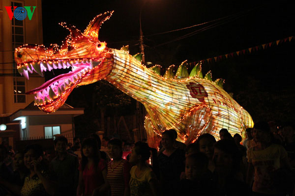 On display are lanterns of all shapes and sizes, each 3-4 metres high. The most impressive ones are in the shape of dragon, national hero, and Tan Trao banian tree.