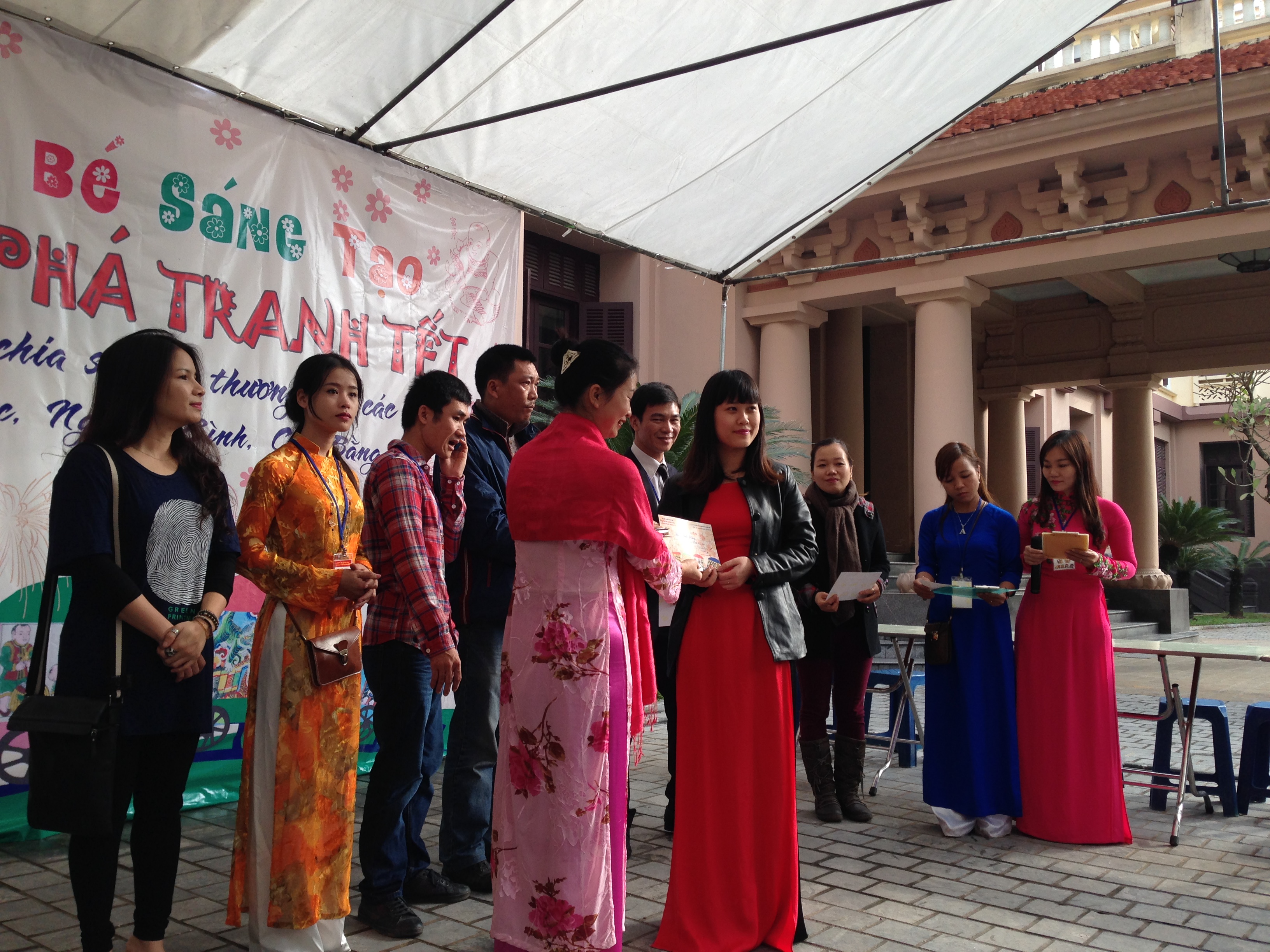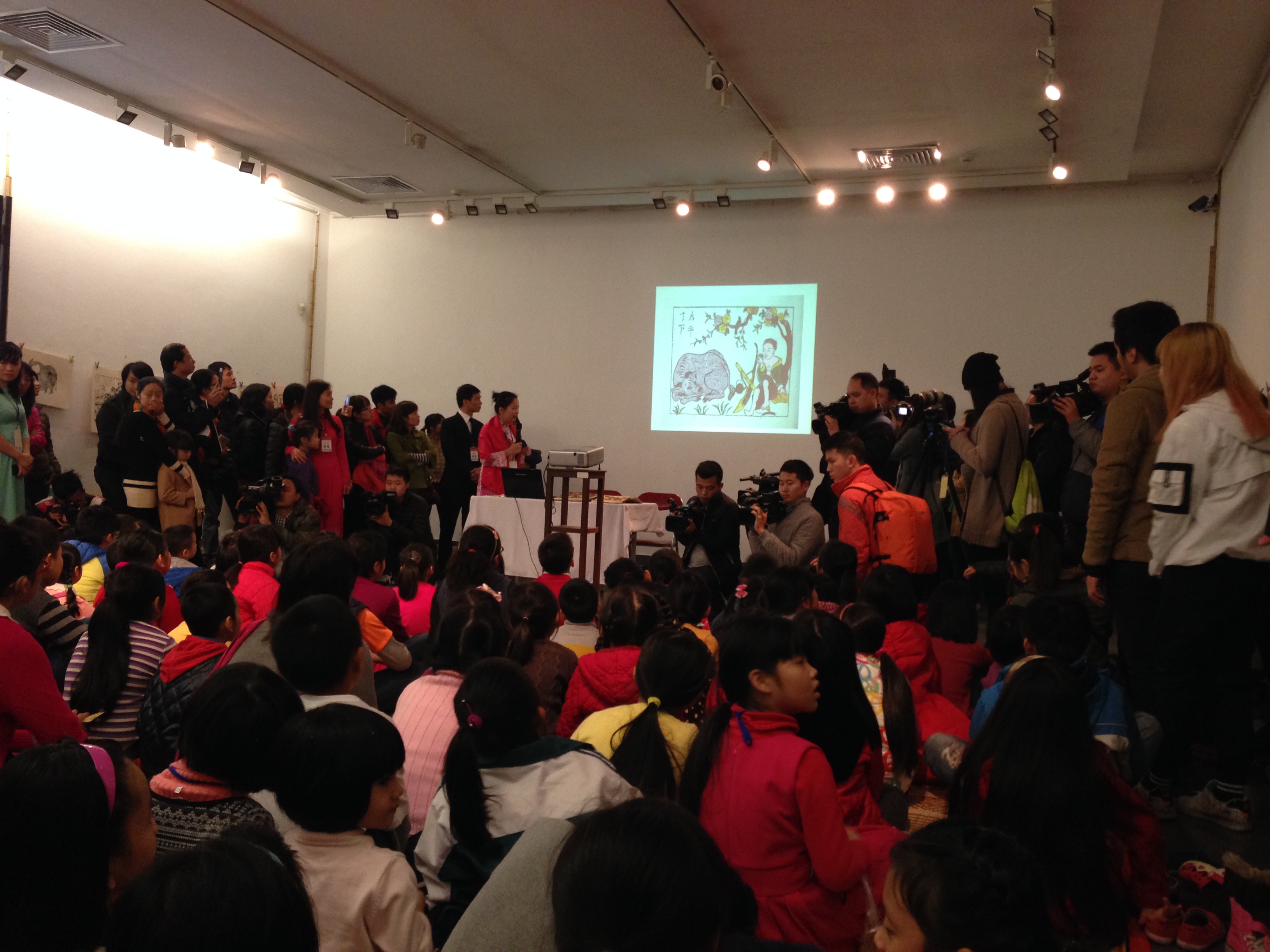 (VOVworld) – More than 400 children in Hanoi participated in a program called “Explore and create Tet paintings with children” at the Vietnam Museum of Fine Arts on Sunday. They took part in activities to learn how to print and color folk paintings and create New Year greeting cards. This event was part of a project launched by Dr. Trang Thanh Hien, with the participation of lecturers and students from the Vietnam University of Fine Arts.