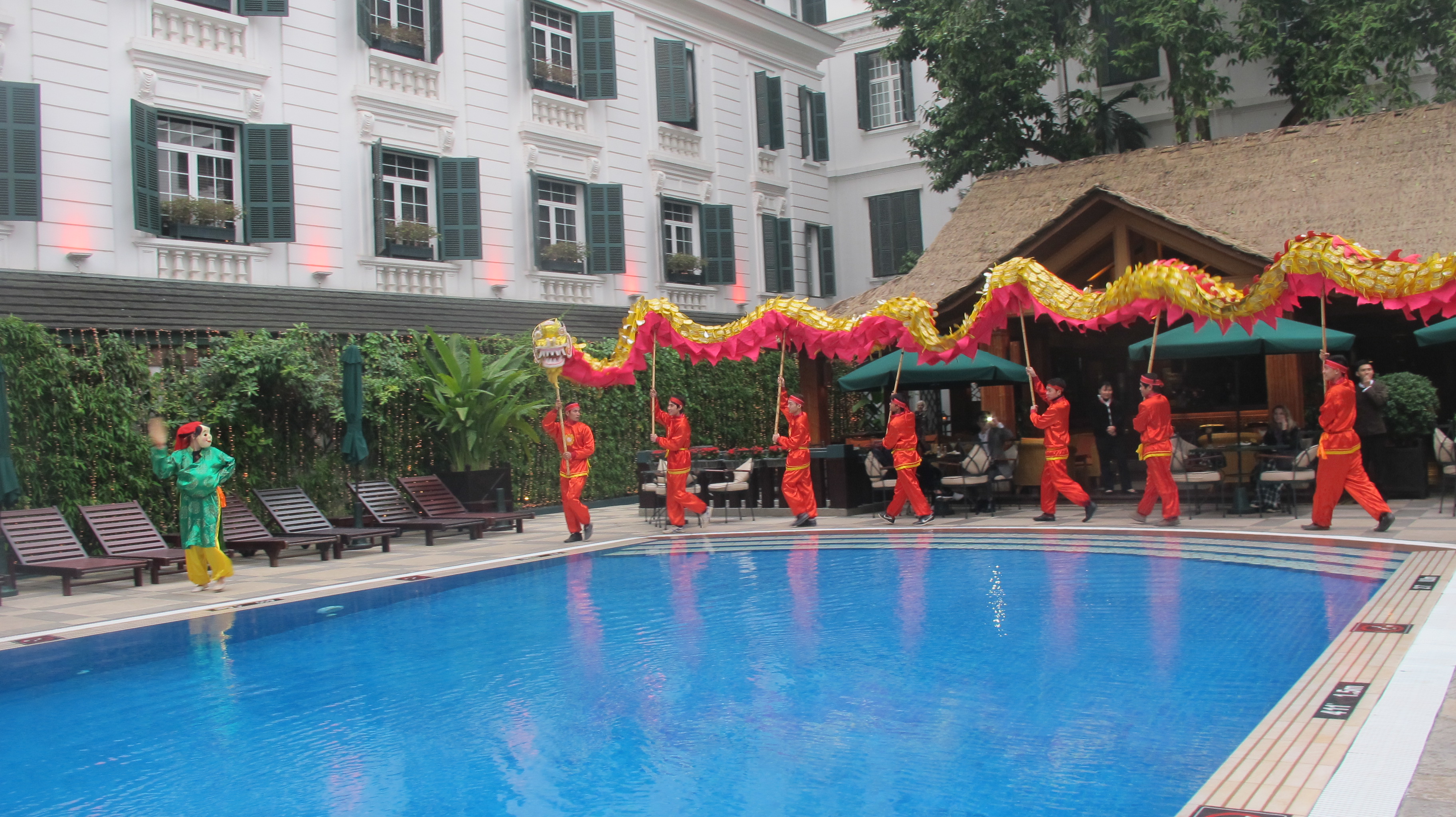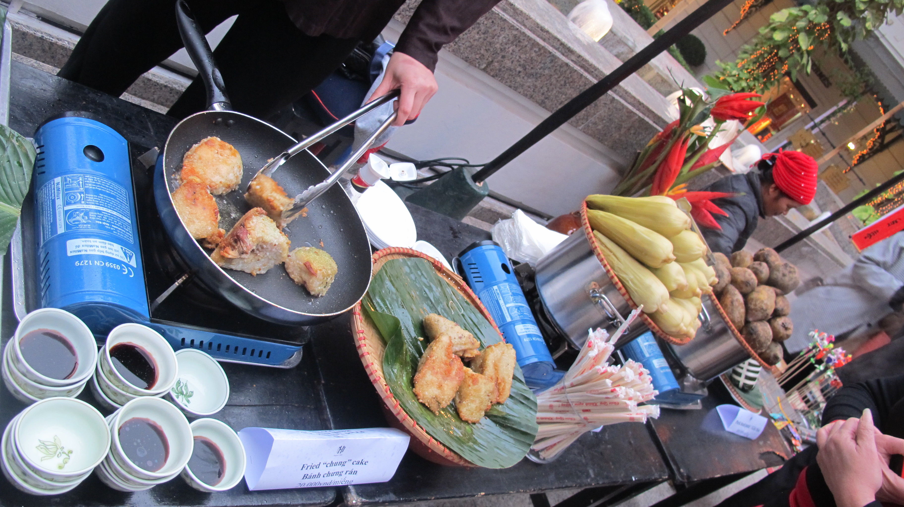 (VOVworld) – Some of the most distinctive features of the Vietnamese Tet holiday were showcased at an event called “Cho Que”, or a traditional Vietnamese market, at the Hanoi Sofitel Legend Metropole. The venue for the event was the hotel’s open-air courtyard. At Cho Que, vendors set up shops along the walkway bordering one side of the hotel’s inner sanctum. Dressed in traditional garb, vendors sold food and handicrafts. Other activities included a dragon dance, Vietnamese traditional music performances and a special Chung or square sticky rice cake making competition. The event drew many young Vietnamese as well as foreigners.