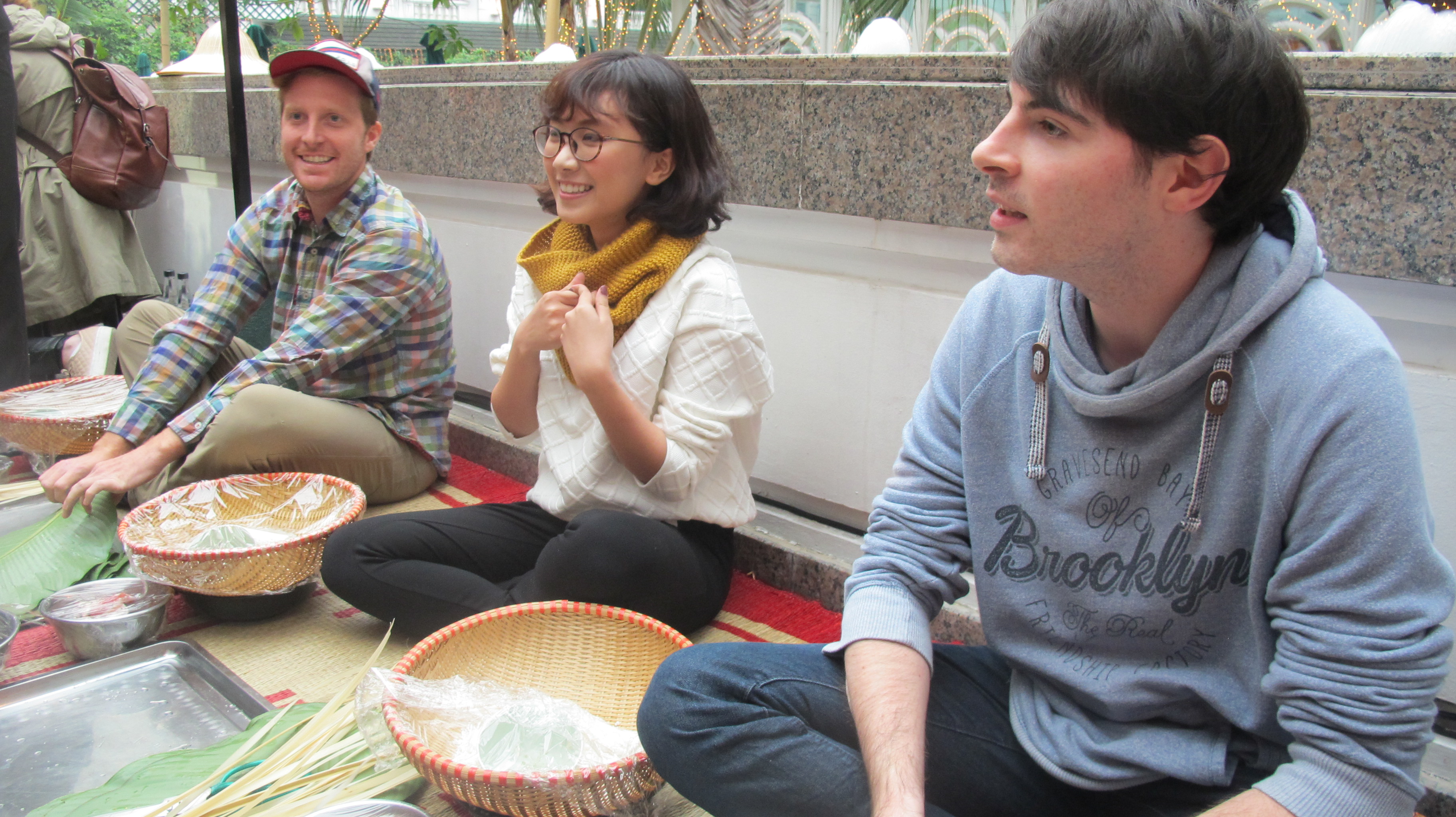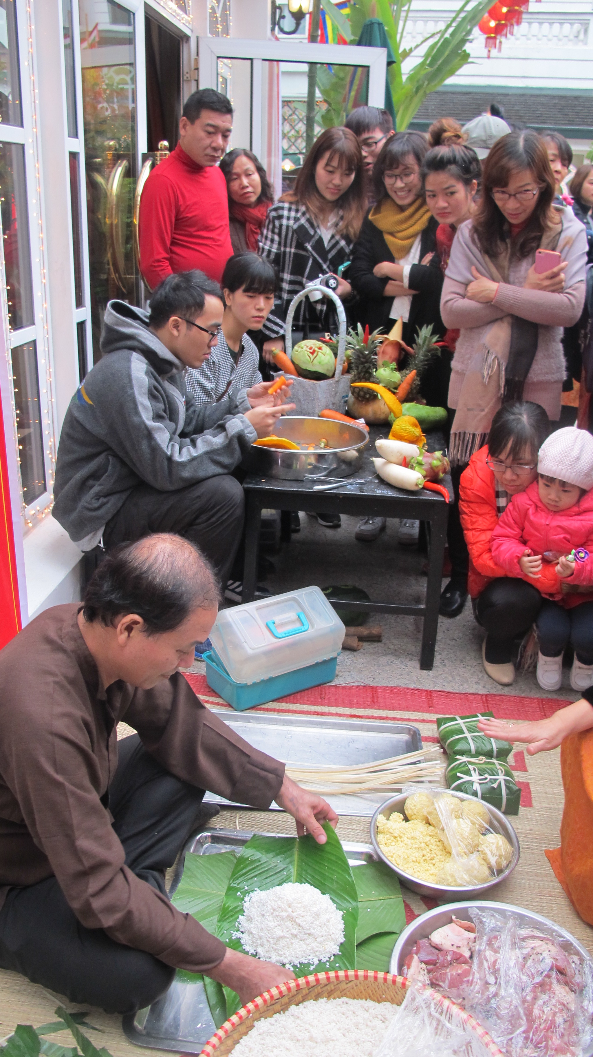 Artisan Le Dung was showing visitors how to make Chung or square sticky rice cake.