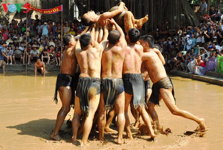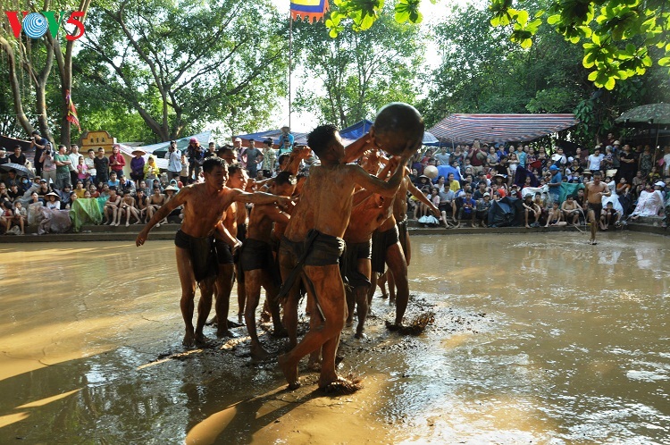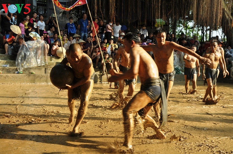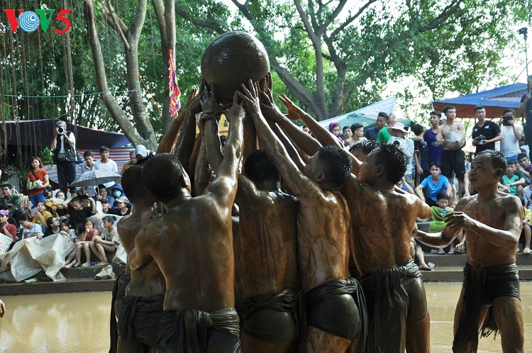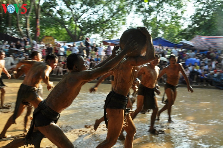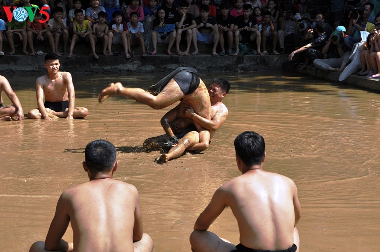 The 200-sqm wrestling field, built hundreds of years ago, is filled with liquid mud. At both ends of the yard, two holes, 80cm deep and 50cm wide, are dug for the goals.