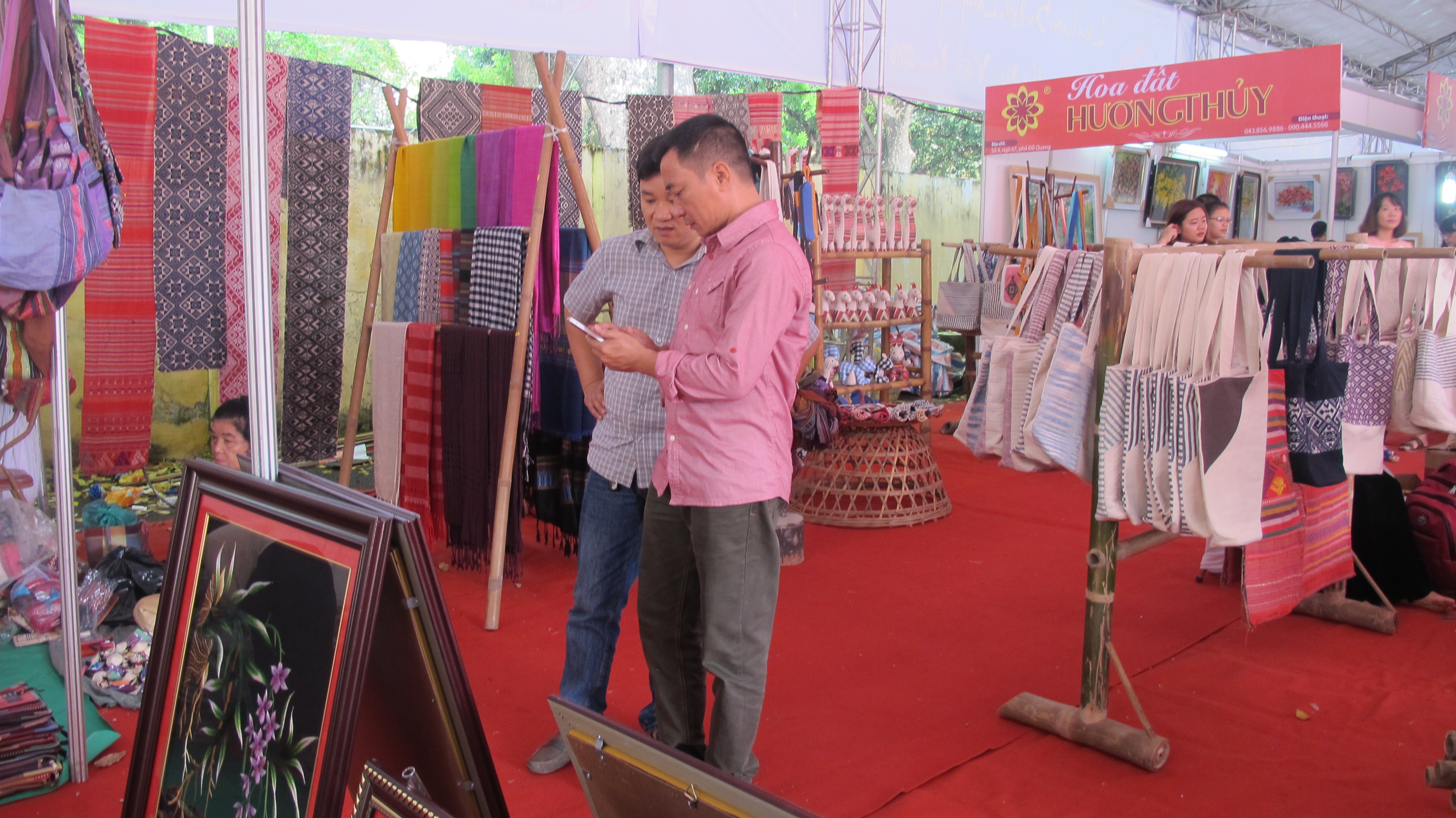 Visitors examined products inside a booth