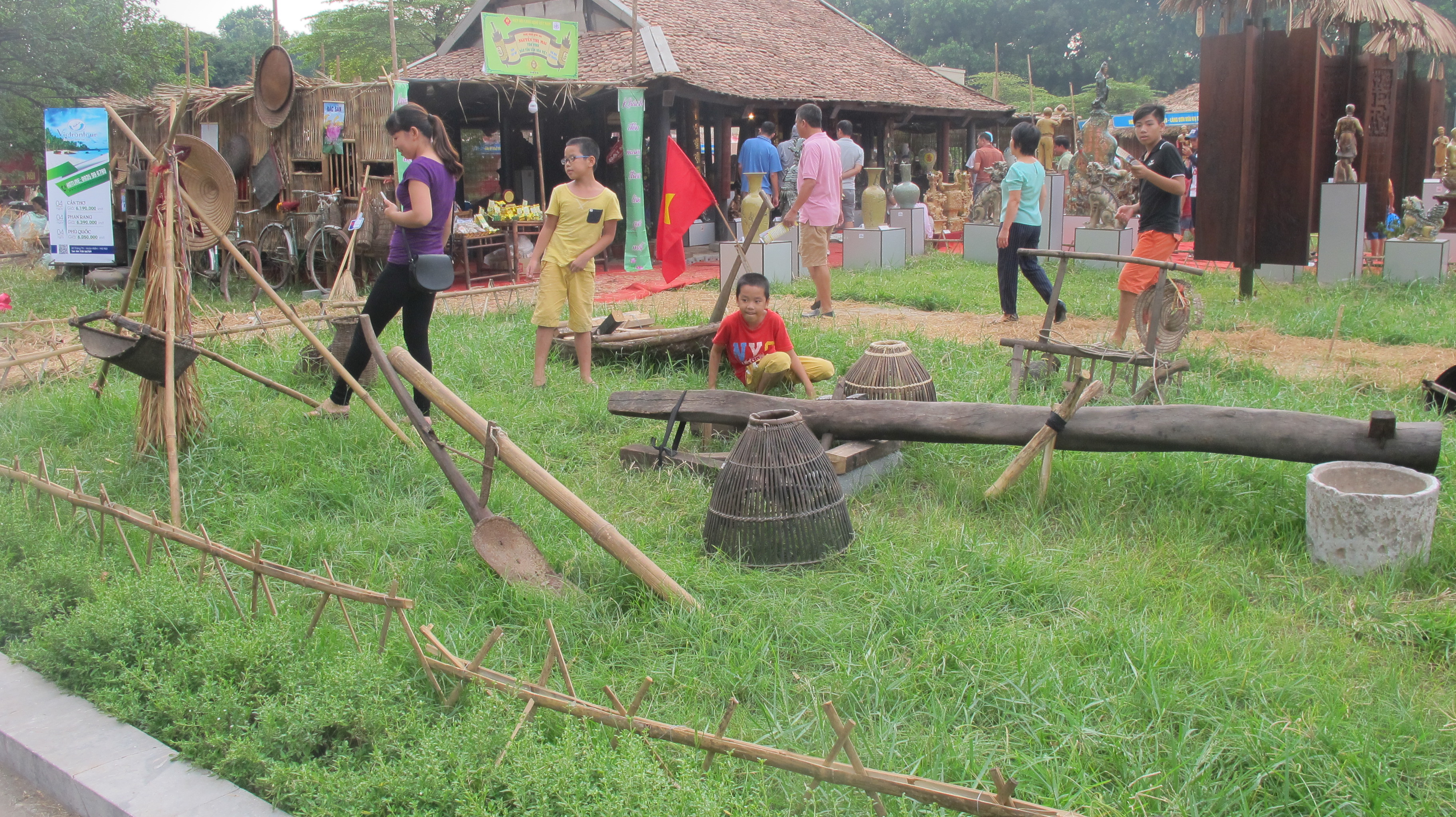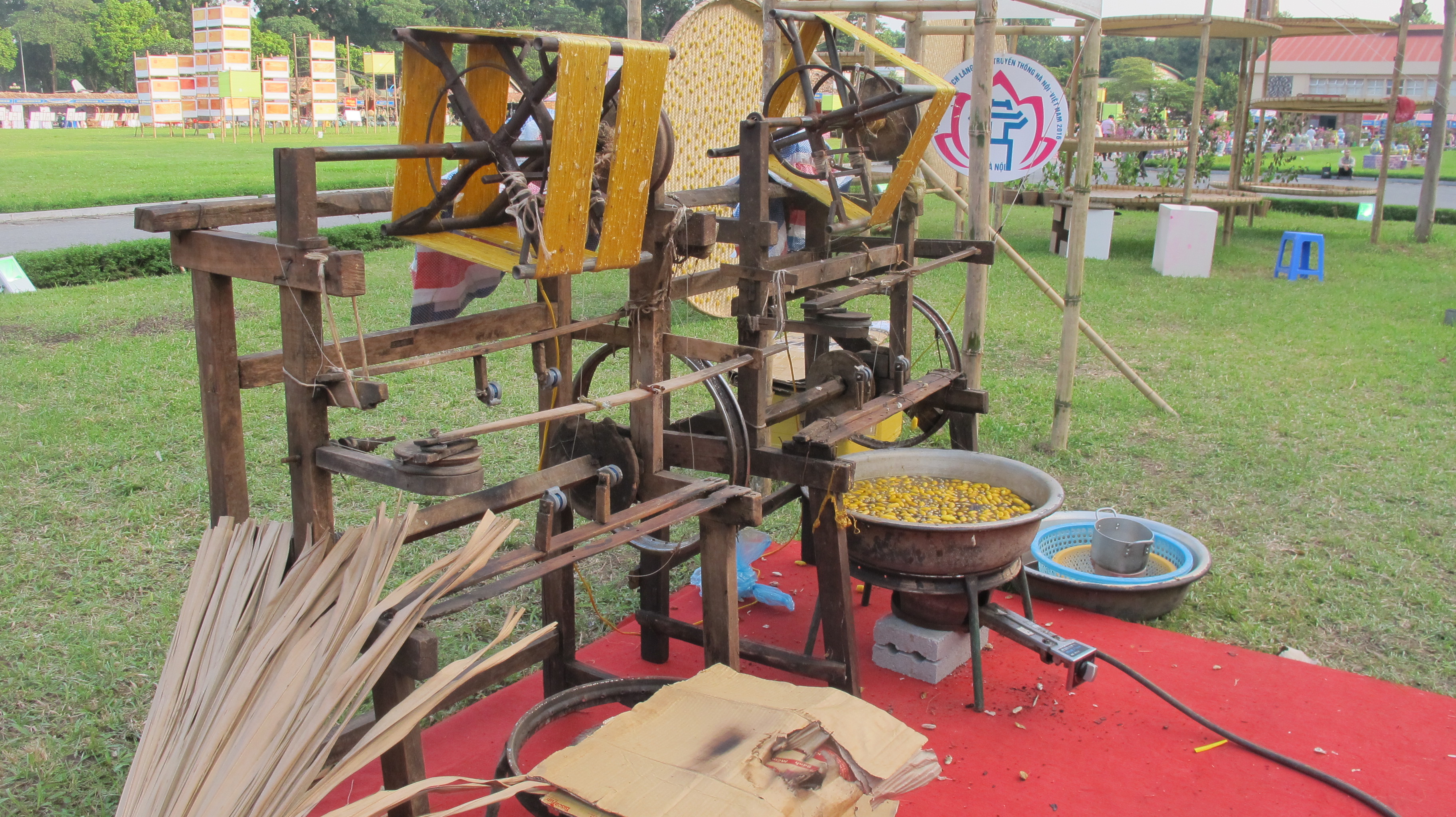 (VOVworld) – Vietnamese traditional craft products such as Phu Vinh rattan, Chang Sơn fan, Bat Trang pottery, Ha Thai lacquer, Ngu Xa bronze, Quat Đong handmade embroidery and Dinh Cong silver, Uoc Le pork paste, and Vong young green rice were featured at the Hanoi Traditional Craft Village Tourism Festival 2016.