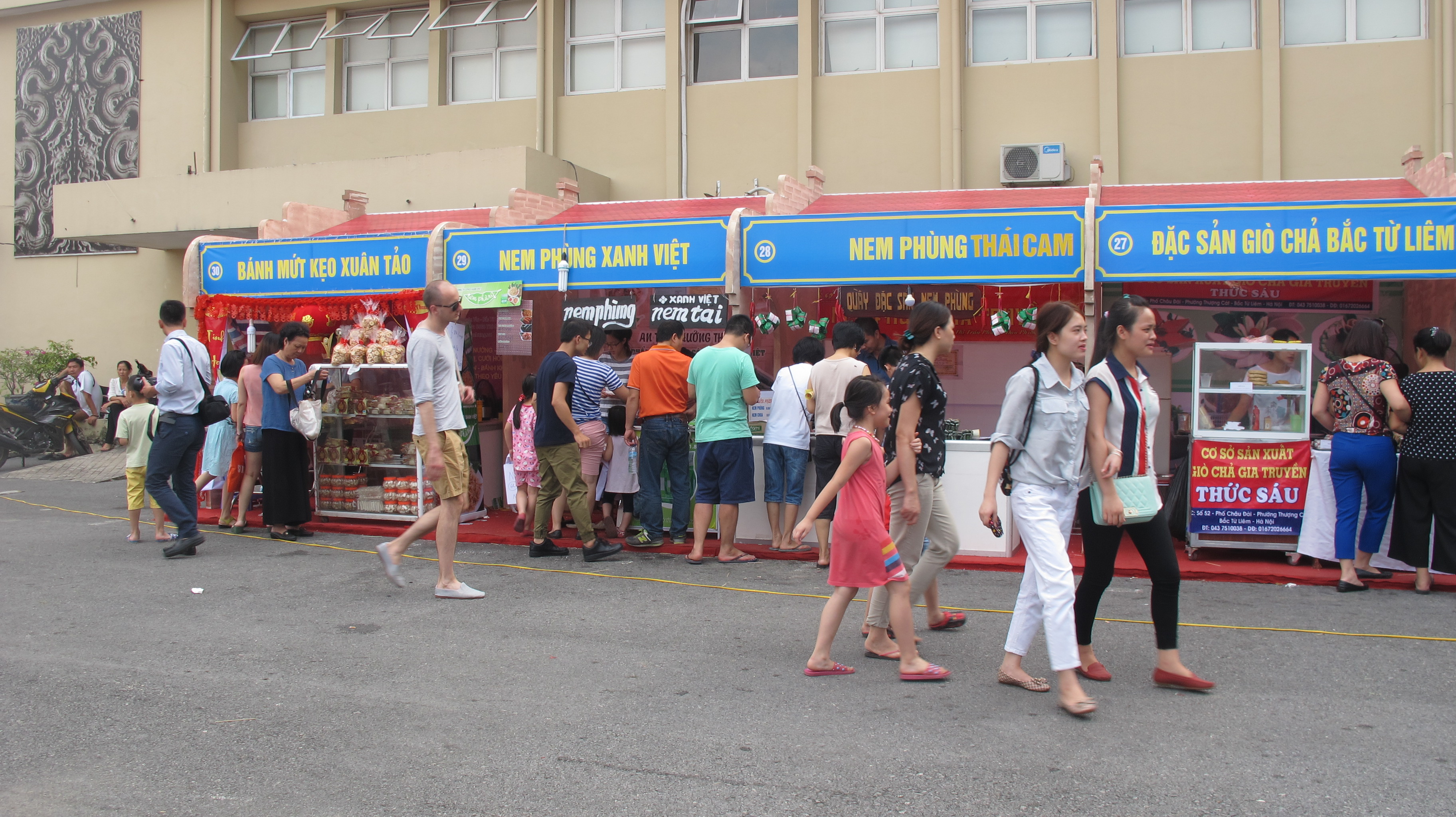 Stalls selling specialties from well known Vietnamese traditional villages such as Uoc Le pork paste and Vong young green rice