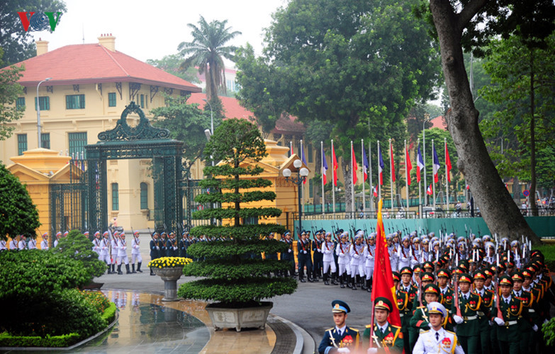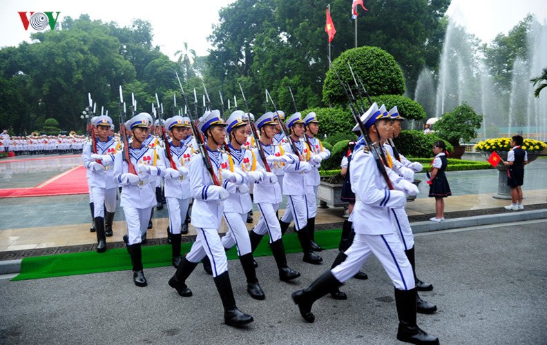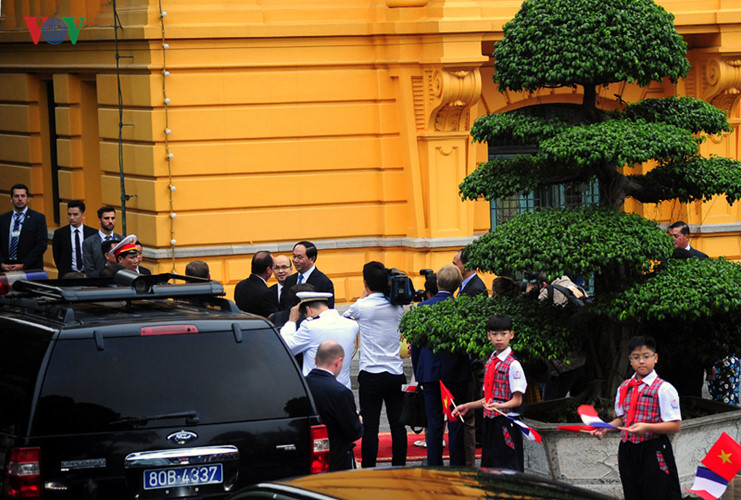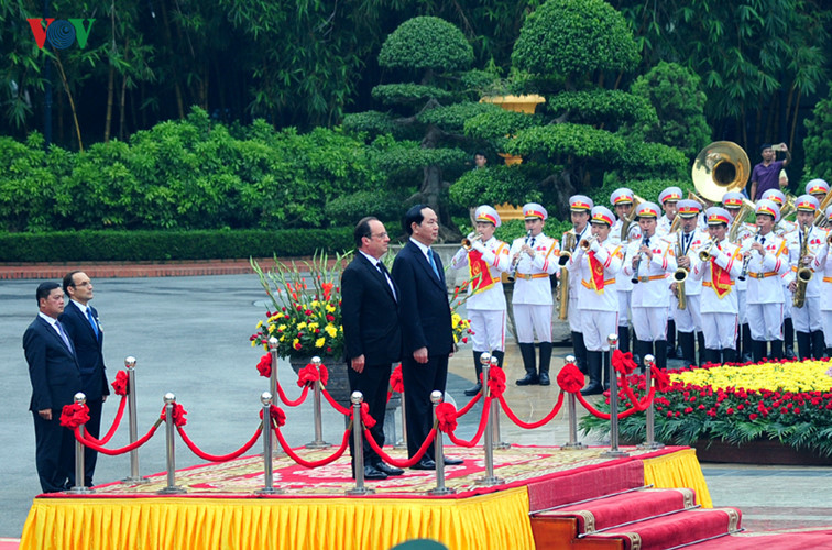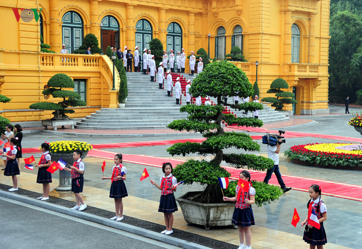 (VOVworld)- An official welcome ceremony for French President Francois Hollande took place on the morning of September 6 at the Presidential Palace in Hanoi.