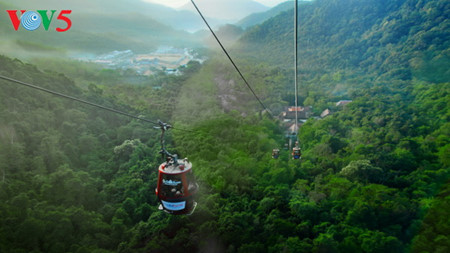 A track leads up the mountain. The cable car station is open from early morning to serve visitors. Cable cars make going to Yen Tu Mountain much quicker and easier than before. |