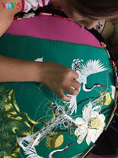 クアットドン村に住む高齢者らの記憶の中では、以前、刺繍業が盛んに発展している間に、刺繍の製品が全国各地に出荷されたことがあったそうです。現在にもクアットドン村の村人は伝統的職業に携わっています。高齢者の刺繍職人であるブイ・ティ・ハインさんは次のように語っています。
