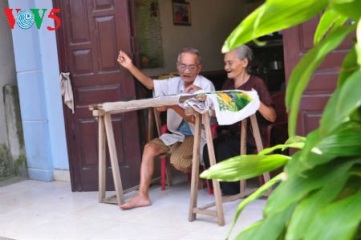 数世紀にわたって、クアット・ドン村は北部農村部の昔のままの古さを持っています。村の入口の門にあるガジュマルの木の傍に、村の神様を祀る神社があり、その近くに、ベトナムの刺繍を始めた元祖レ・コン・ハインを祀る神社があります。この神社に置かれた石碑によりますと、14世紀に、レ・コン・ハイン博士は、本名ブイ・コン・ハイン、クアット・ドン村の出身者であり、刺繍の職業を身に付けた後、村に戻って村人に刺繍を教えていたということです。17世紀から、刺繍は全国各地に広がるようになりました。クアット・ドン村の高齢者の一人であるフン・バン・フンさんは次のように明らかにしました。