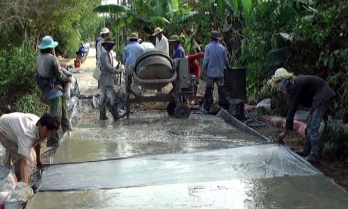 南部バクリエウ省フォックロン県での道路のコンクリート化工事