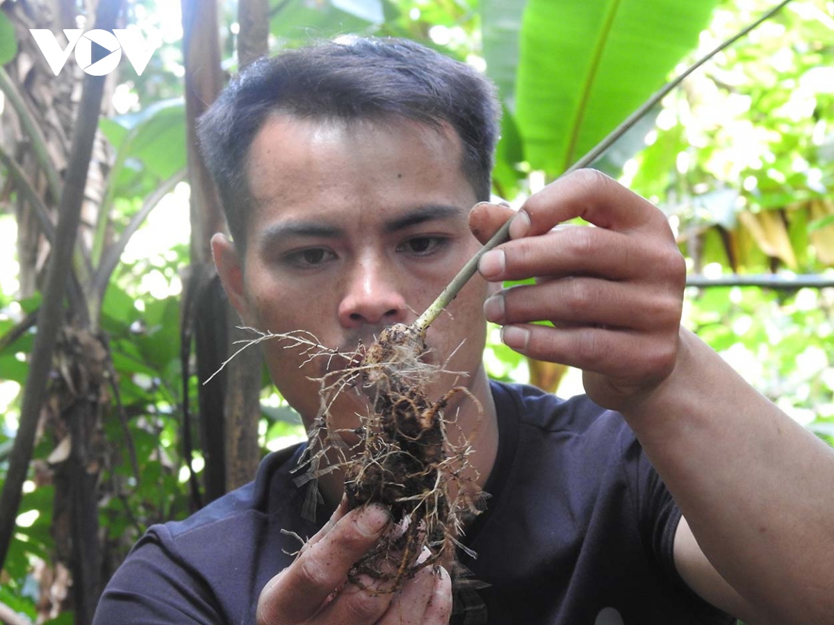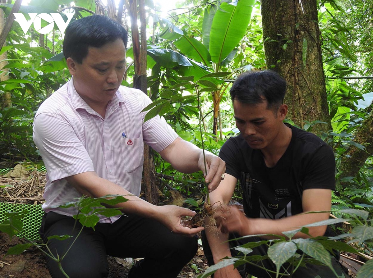 トゥモロン県行政当局は、「ゴックリン」朝鮮人参の木の開発を目指して、栽培業者への融資をサポートしています。ア・ソンさん一家は、以前、貧困な世帯であるので、「ゴックリン」朝鮮人参の木の栽培をするため、社会政策銀行から1億ドンの優遇融資を受けました。現在、ア・ソンさんはおよそ3000本の「ゴックリン」朝鮮人参の木を栽培しています。
