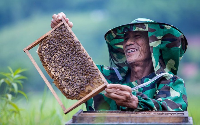 | 北部バクザン省ソンドン県で、養蜂を行うグエン・トゥオン・ヒエンさん(写真:UNFPA Việt Nam) |