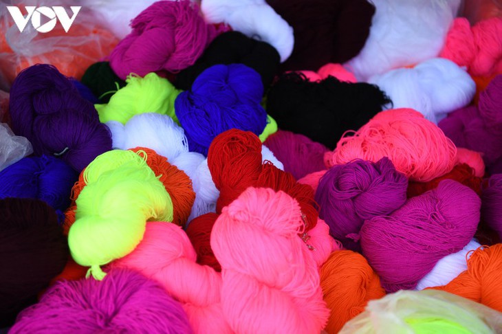 | ここでソンラ省近辺の少数民族が集まって、民族衣装の生地や装飾品などが売買されている |