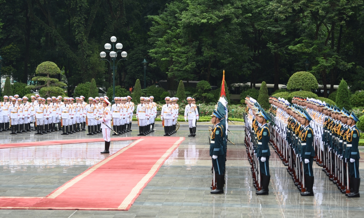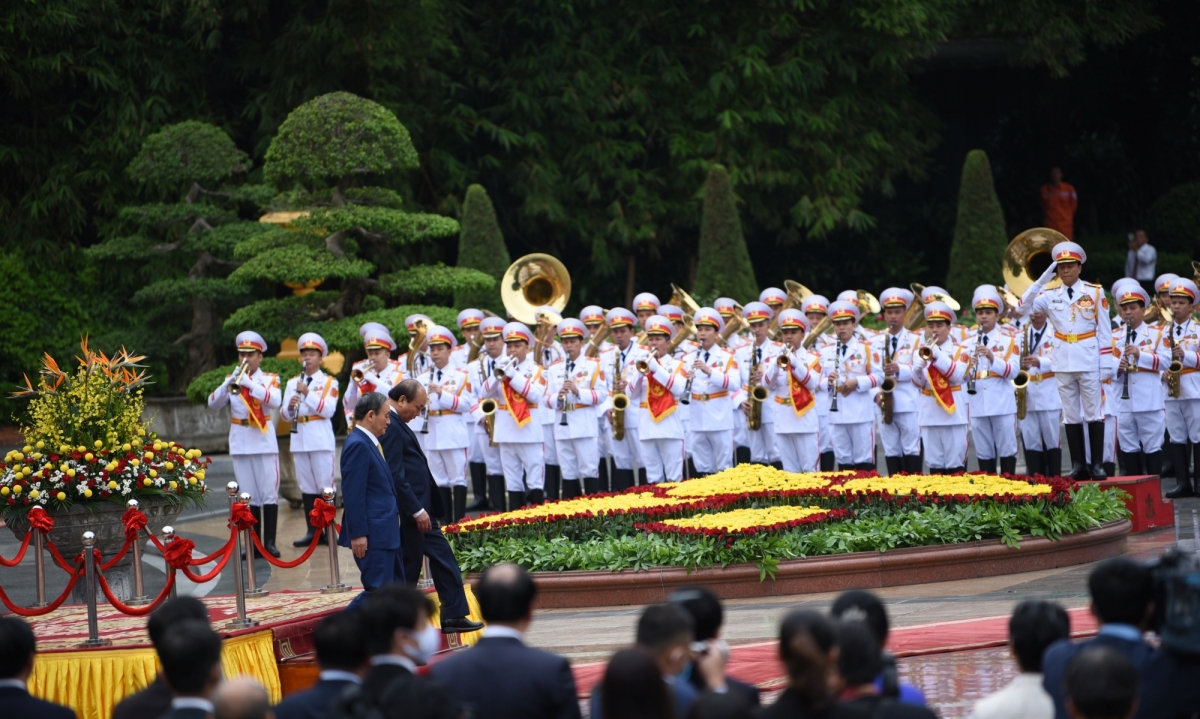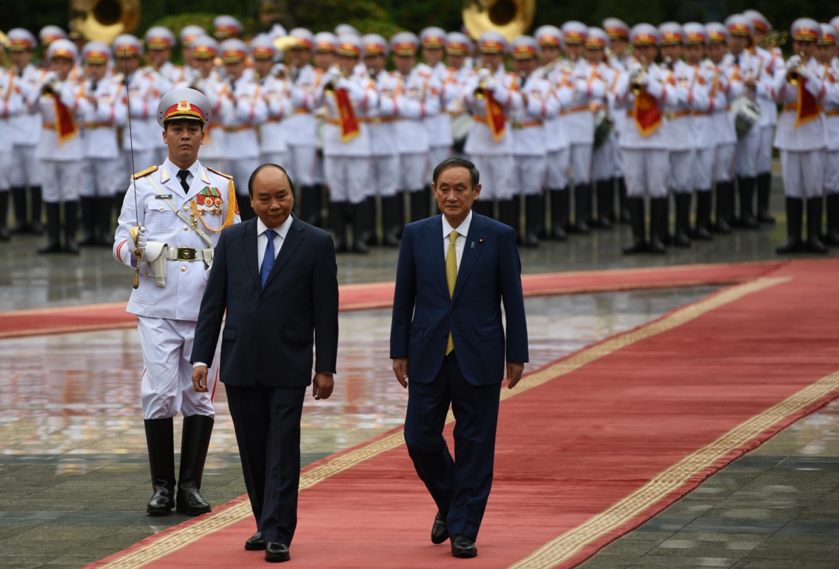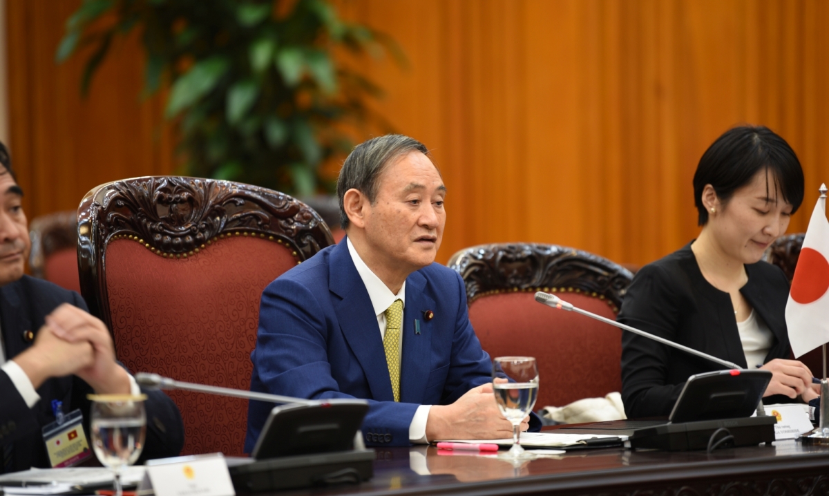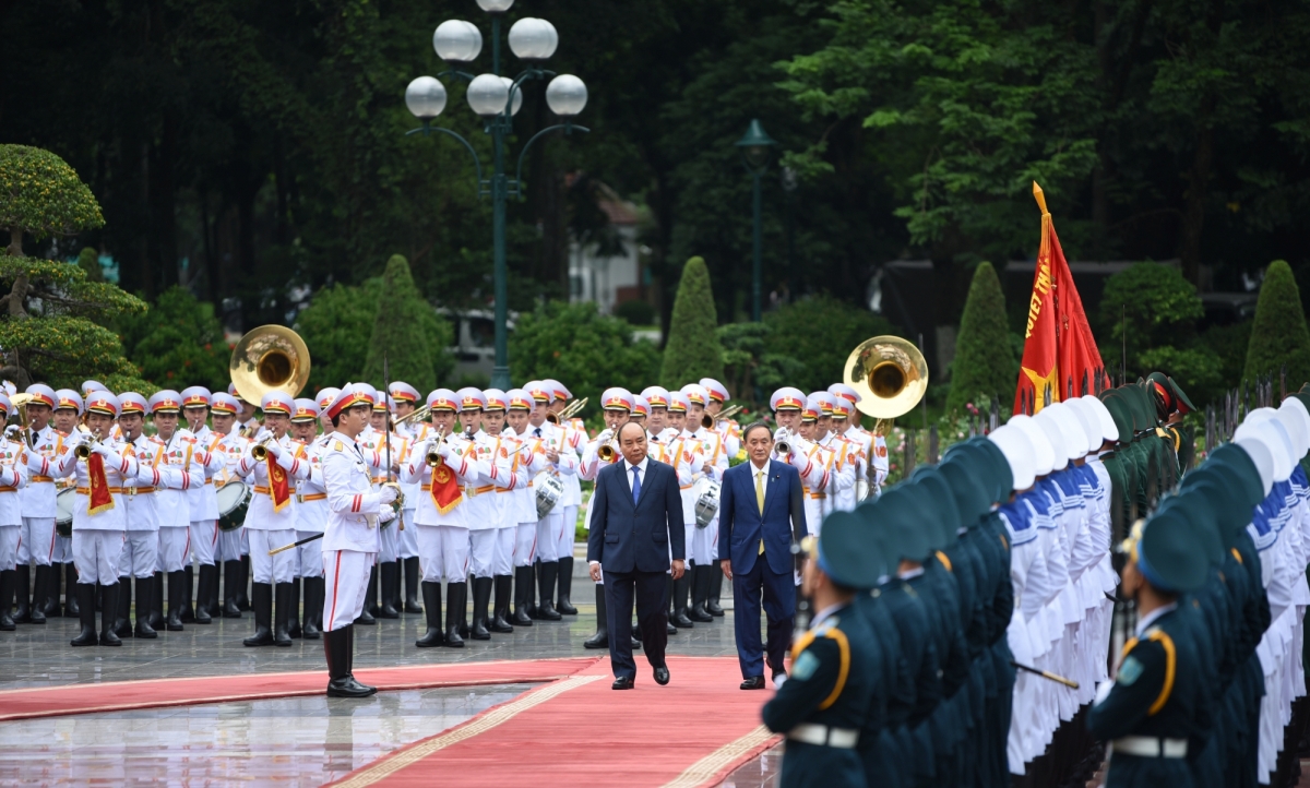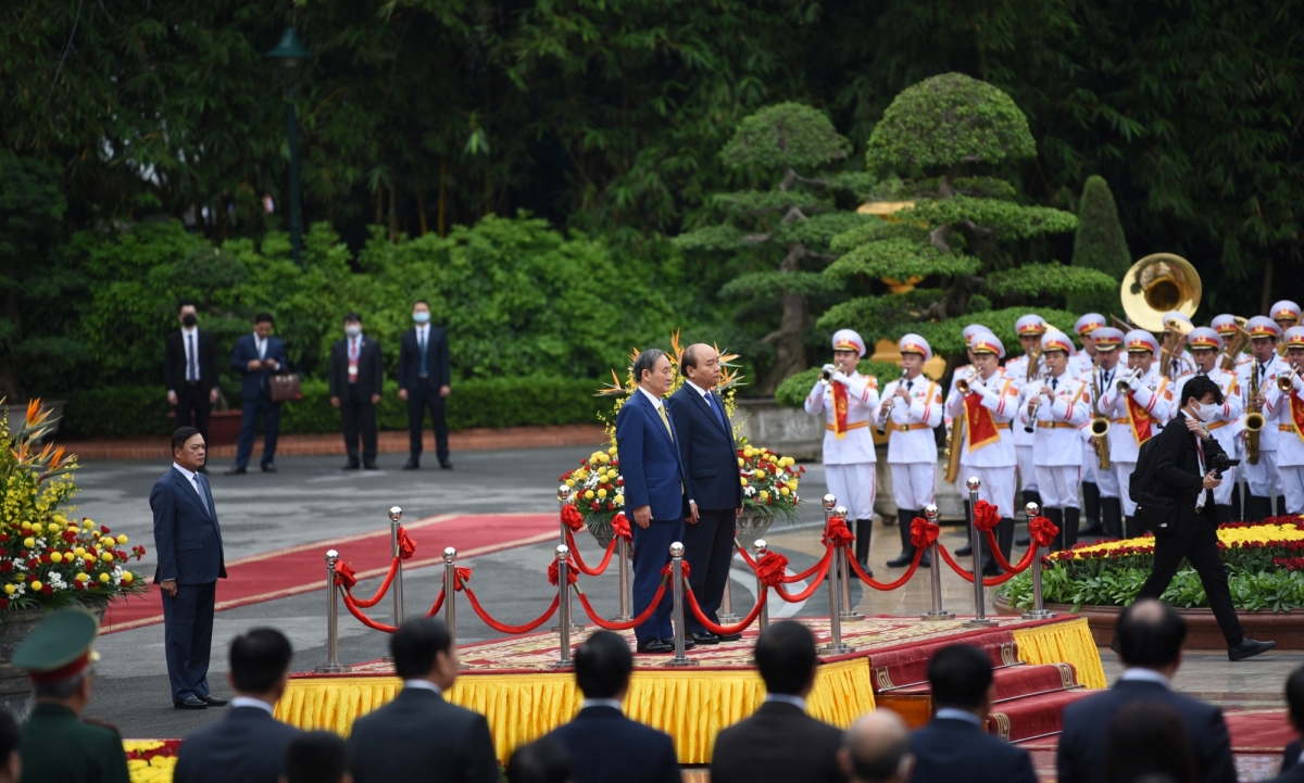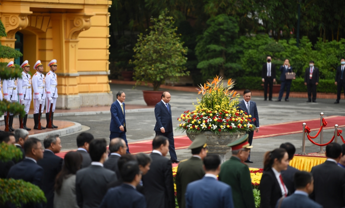 歓迎式後、グエン・スアン・フック首相と菅義偉首相による首脳会談が始まる