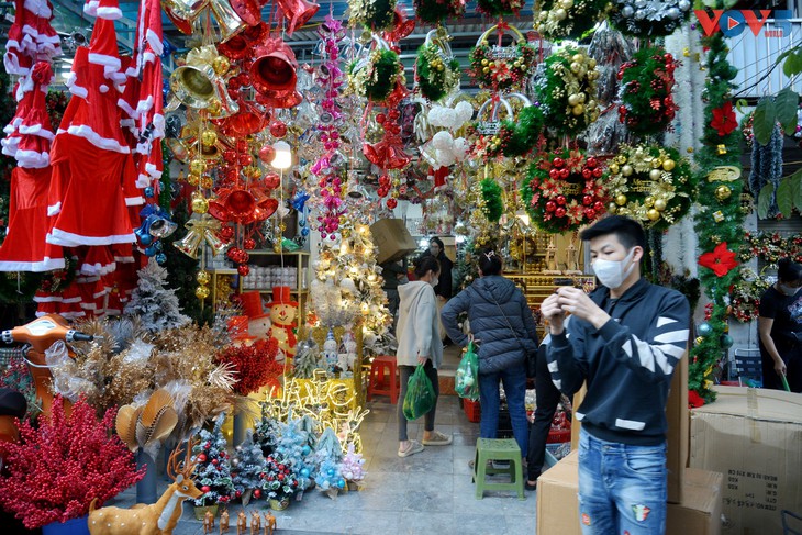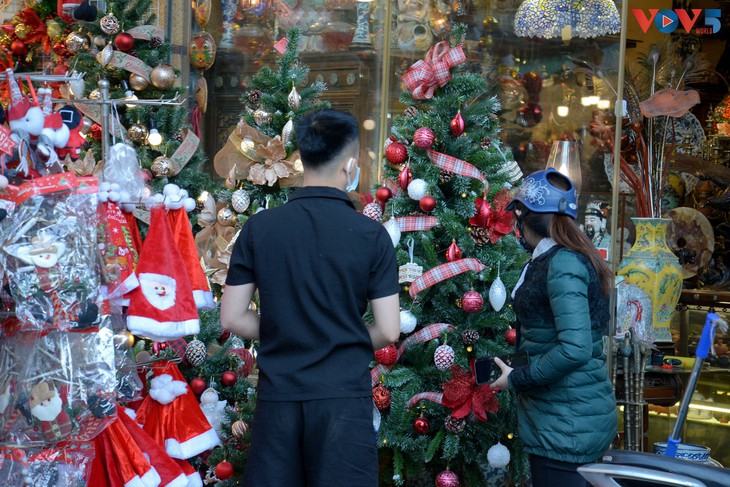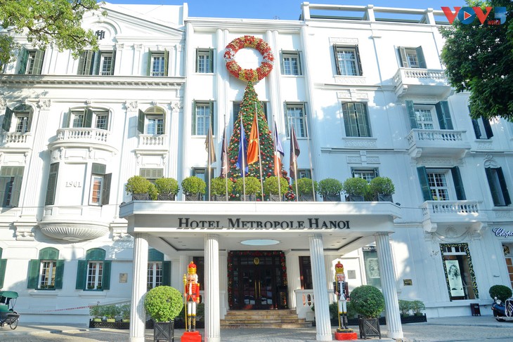 | 12月初めから、ハノイ市内のショッピングセンターや、ホテル、教会などが、クリスマスツリーを置き、美しく飾っている |
